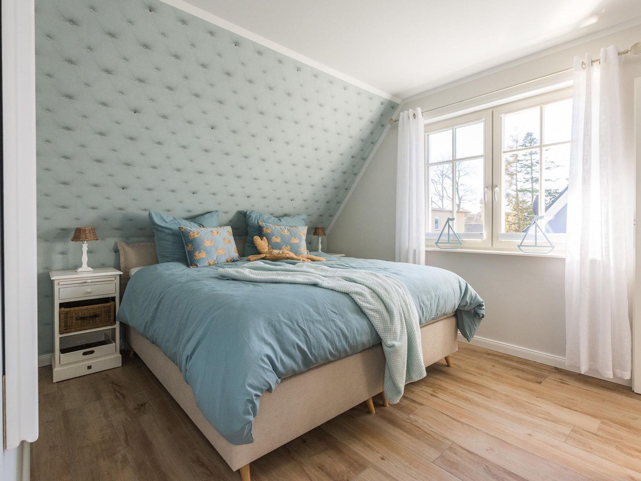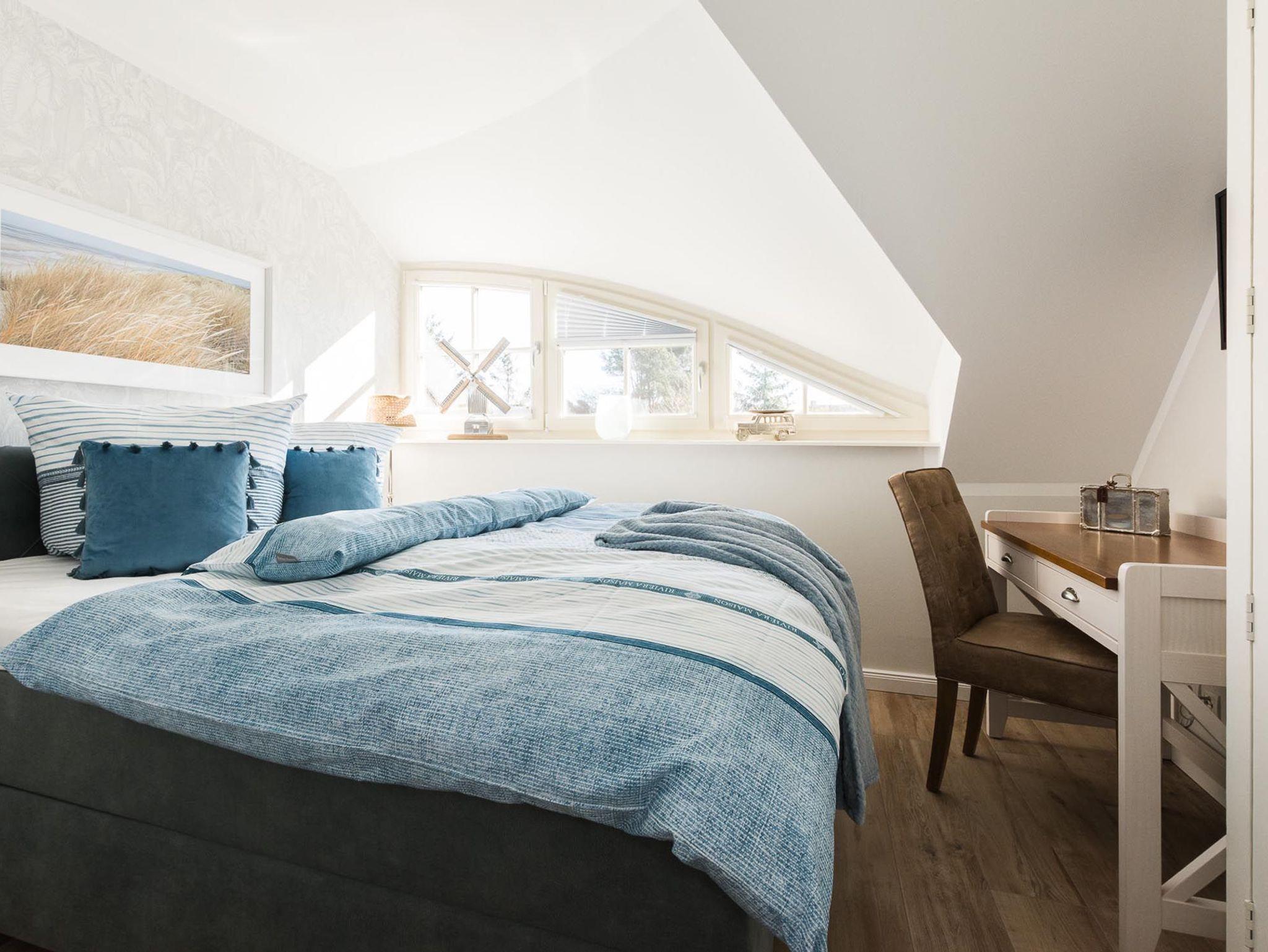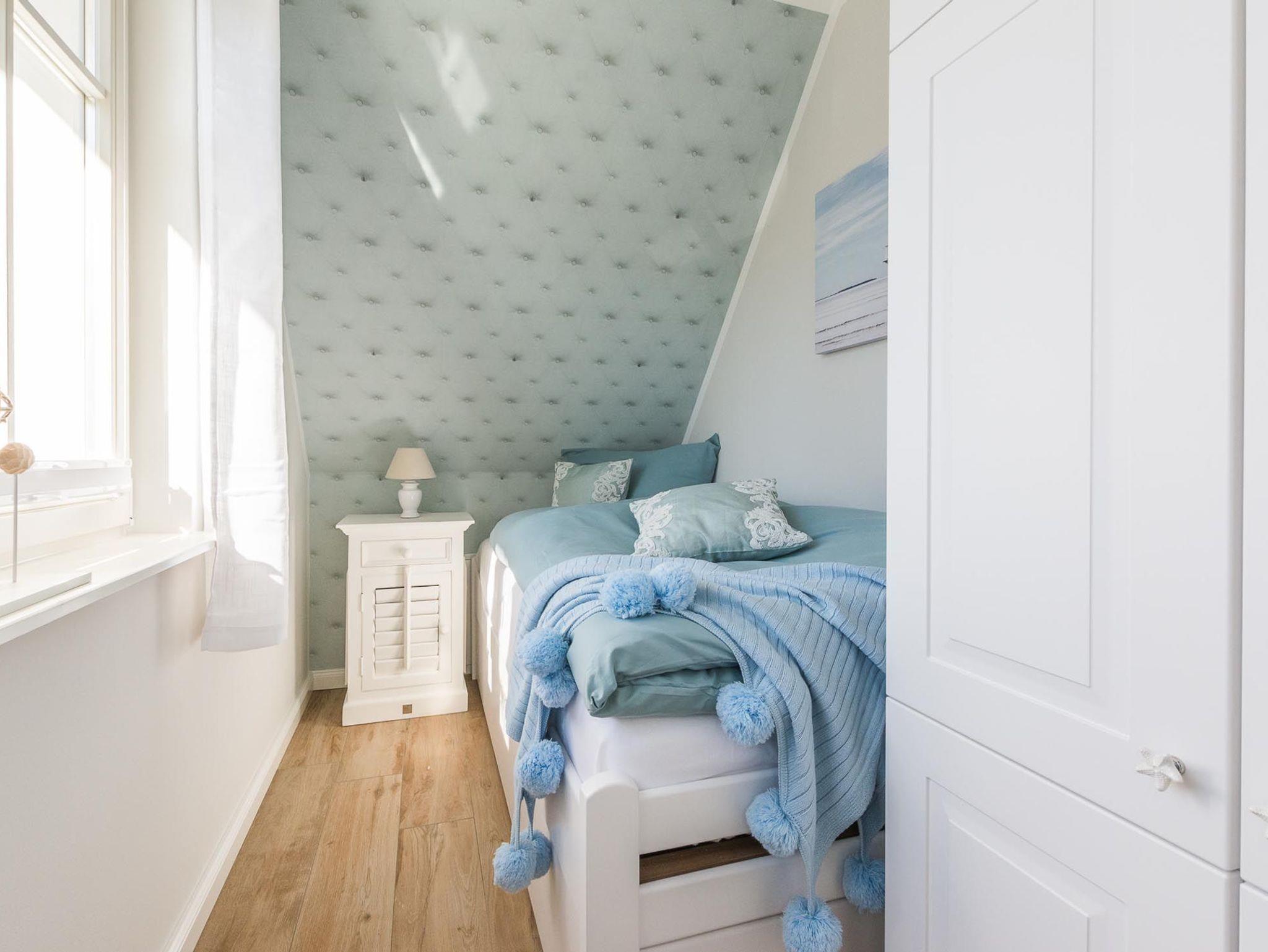 Unter dem Zingster Sternenhimmel befinden sich im Dachgeschoss zwei weitere gemütliche Einzelbetten.