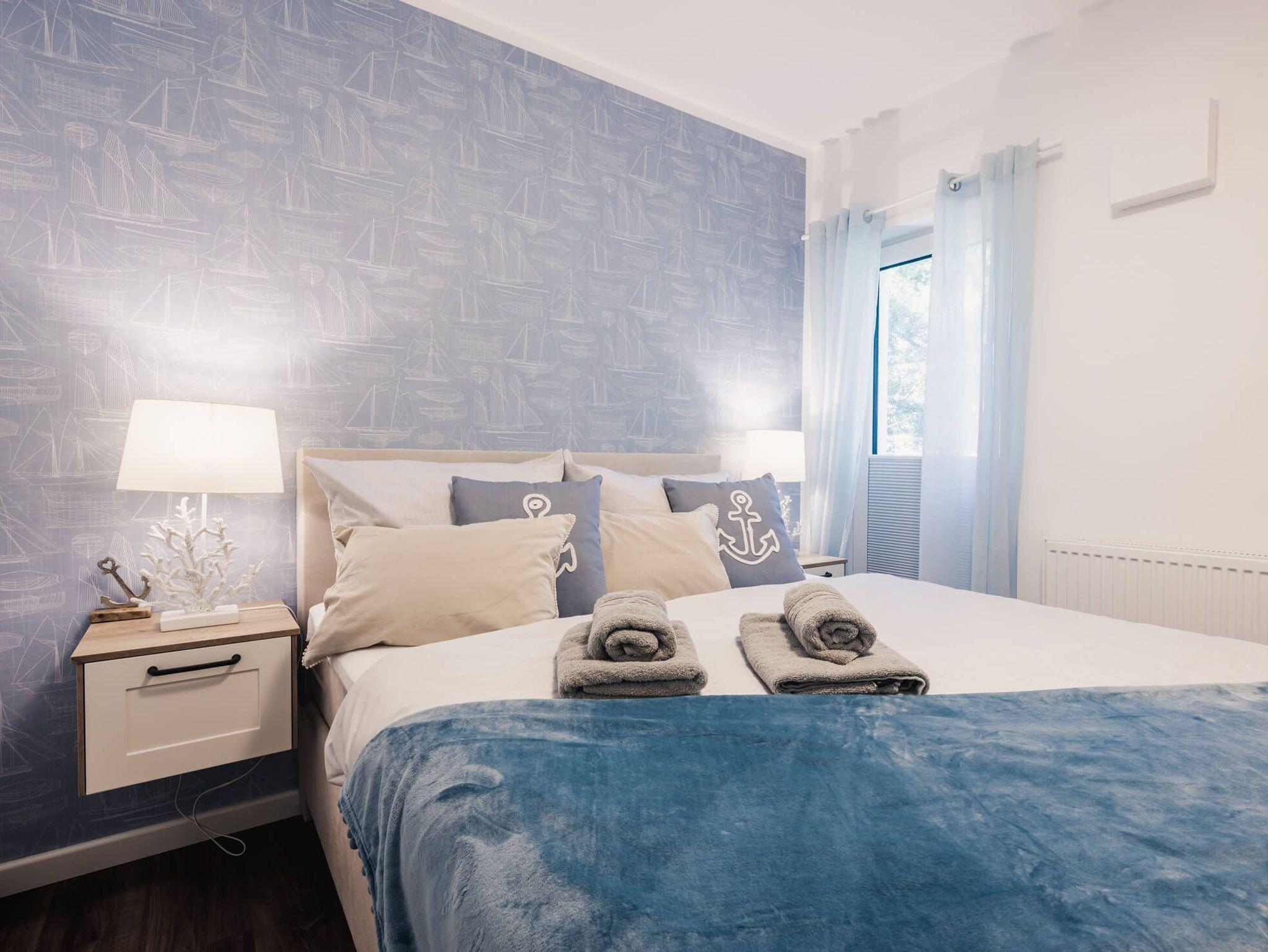 Die zwei Schlafzimmer sind mit hochwertigen Doppelbetten (Boxspringbetten) und Flachbildfernsehern ausgestattet.