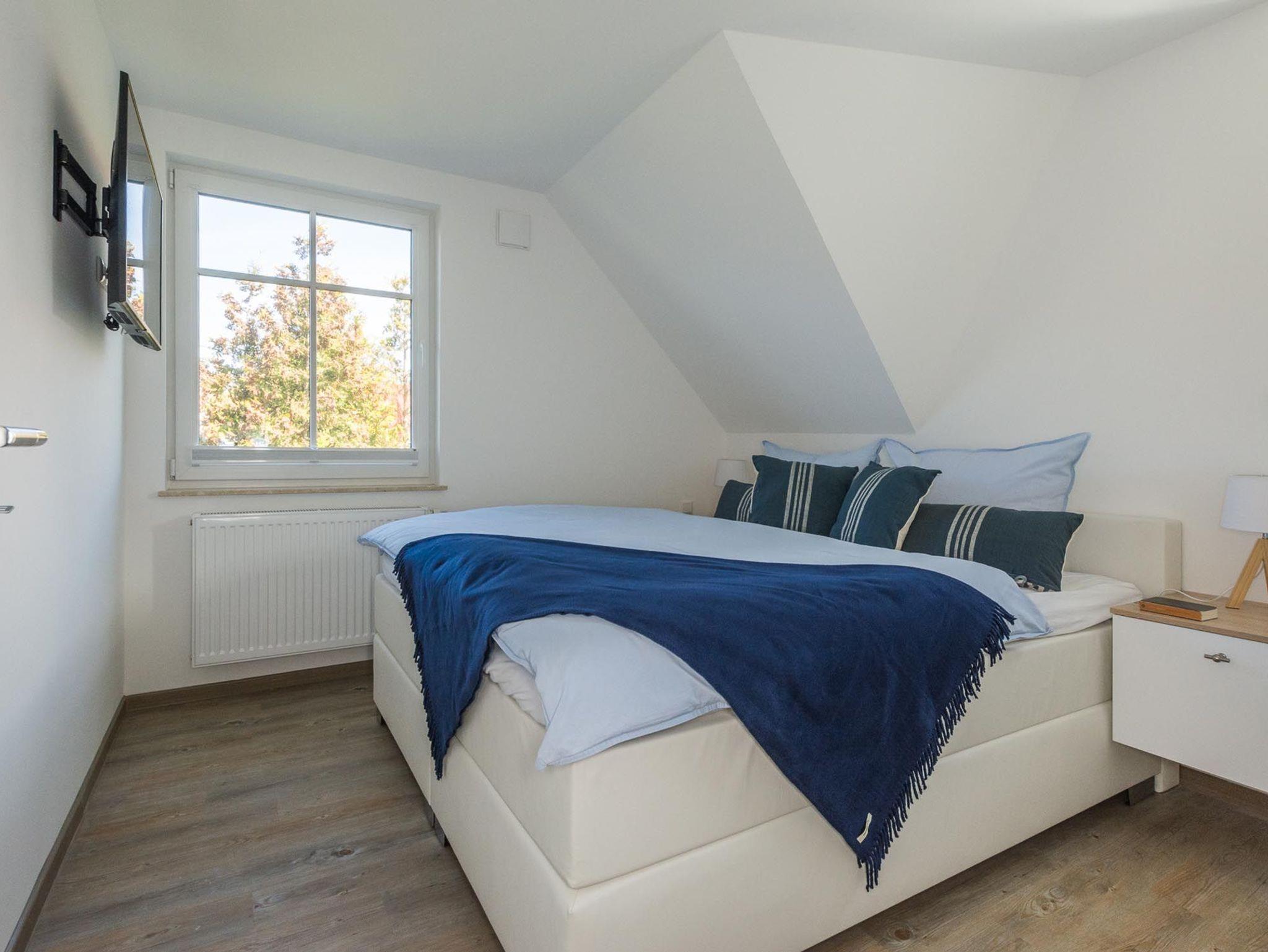 Das Schlafzimmer in dieser Etage ist mit einem großen, sehr bequemen Boxspringbett ausgestattet und garantiert traumhaft erholsamen Schlaf.