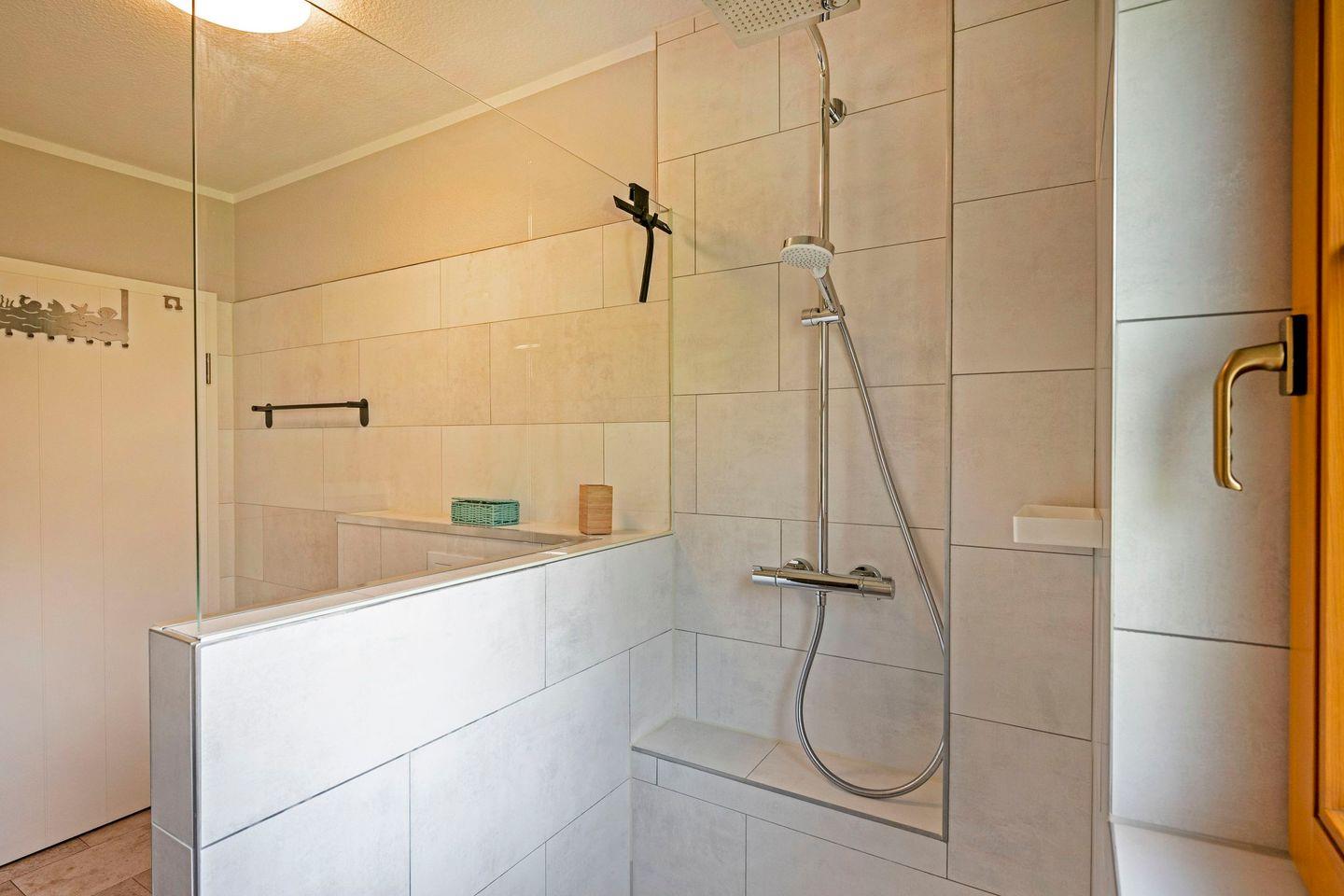Die moderne Küche ist mit Ceranfeld, Backofen, Mikrowelle, Kühlschrank mit Gefrierfach, Dunstabzugshaube und Geschirrspüler voll ausgestattet. Hier können Sie auch im Urlaub bequem kochen.