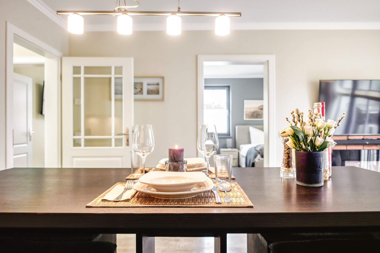 Optimal geschnittene 3 Zimmer Ferienwohnung im Erdgeschoss mit ca. 200 m² großem Garten.