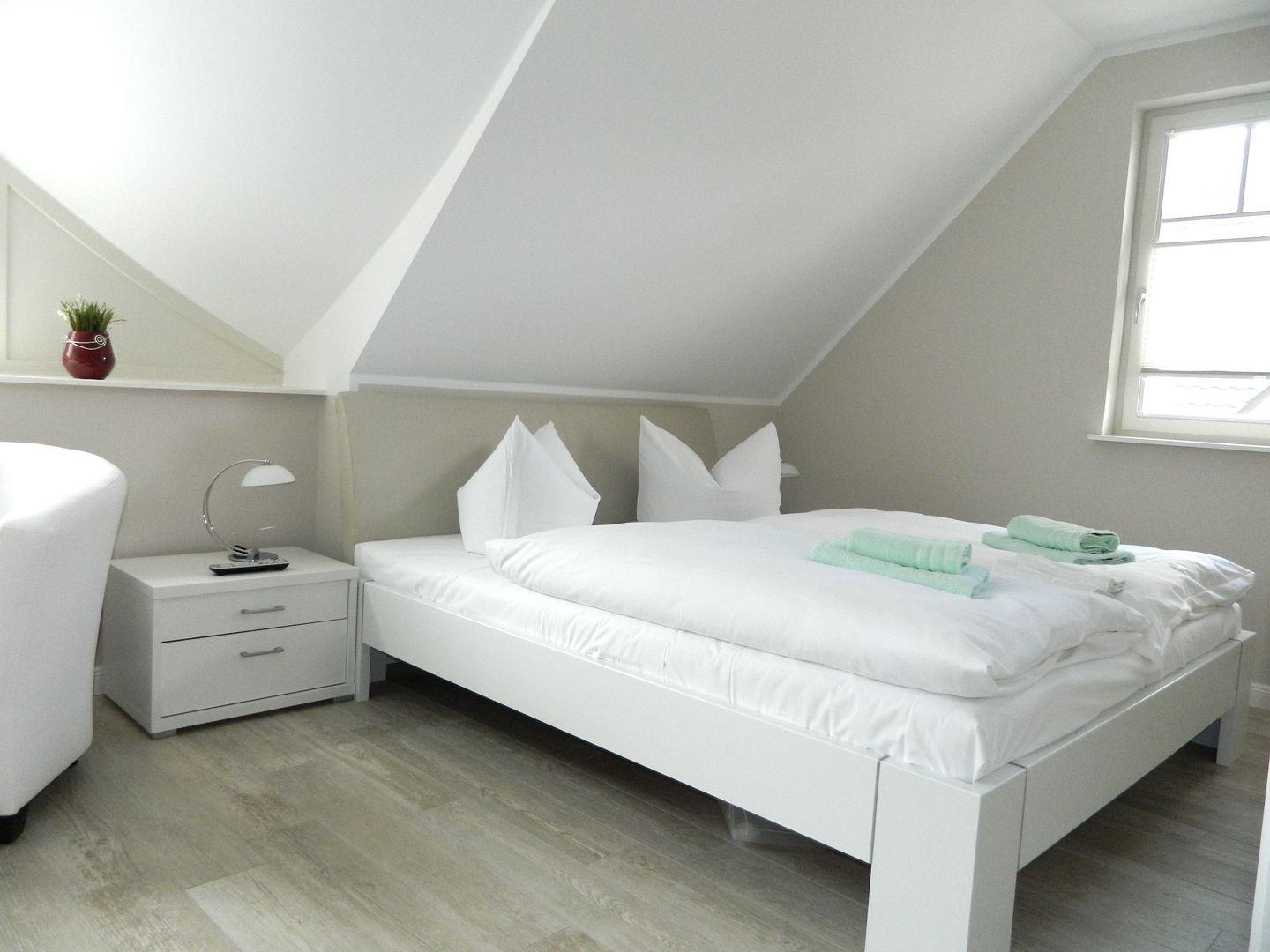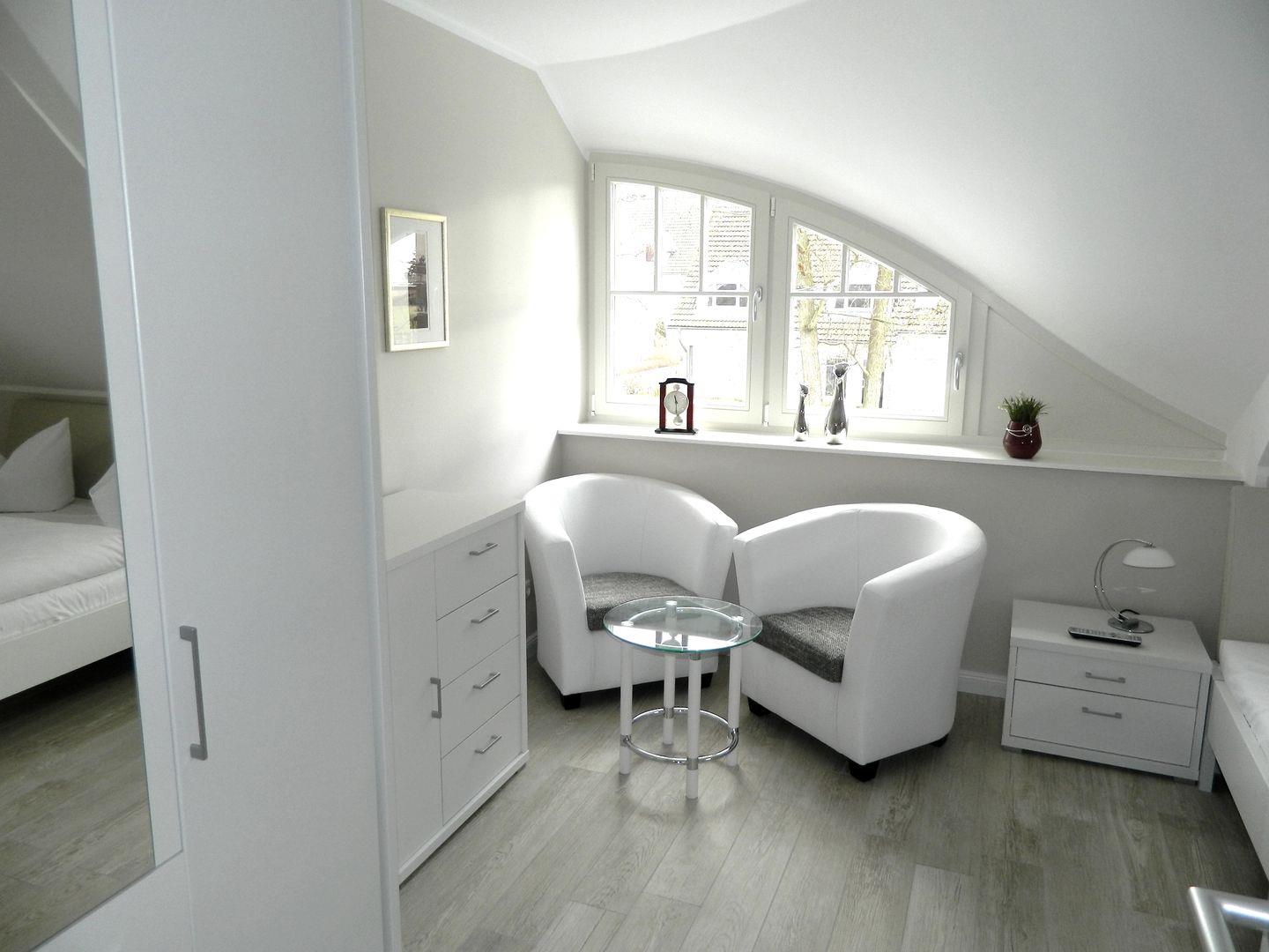Ganz oben unter dem Dach befindet sich ein weiteres Schlafzimmer mit zwei Einzelbetten.