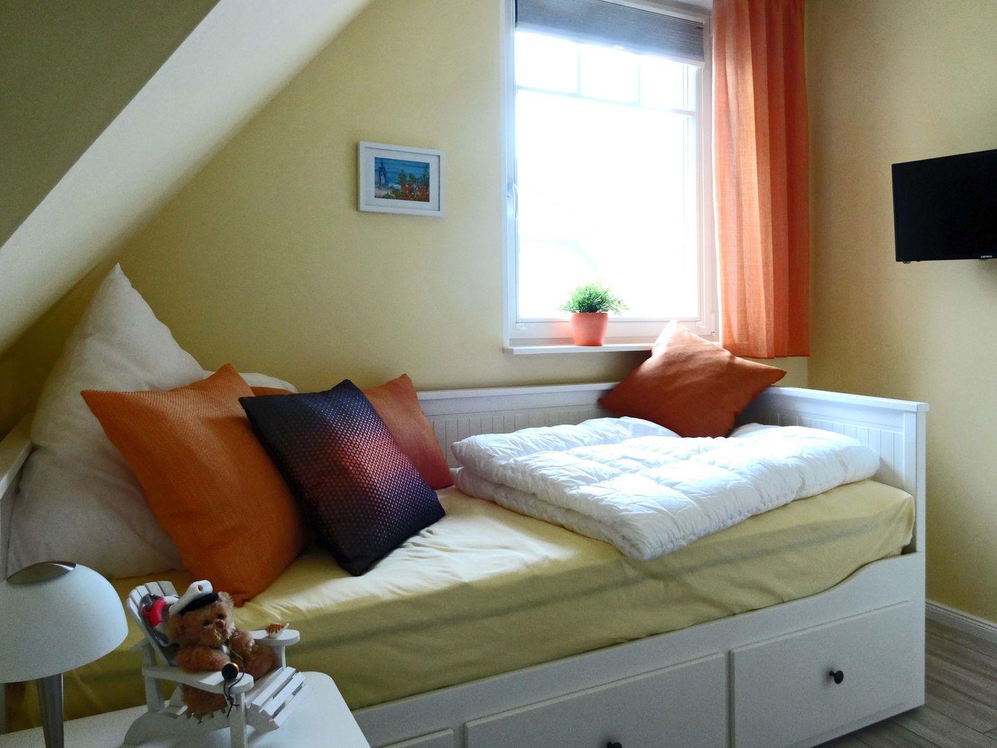 Das Apartment wurde 2017 fertiggestellt und eignet sich für 3 Personen. Es verfügt über ein Hauptschlafzimmer mit Boxspringbett, Einbauschrank und Sat-TV. Das zweite Schlafzimmer ist mit einem Ausziehbett, einem Kleiderschrank sowie Sat-TV und einem DVD-Player ausgestattet.