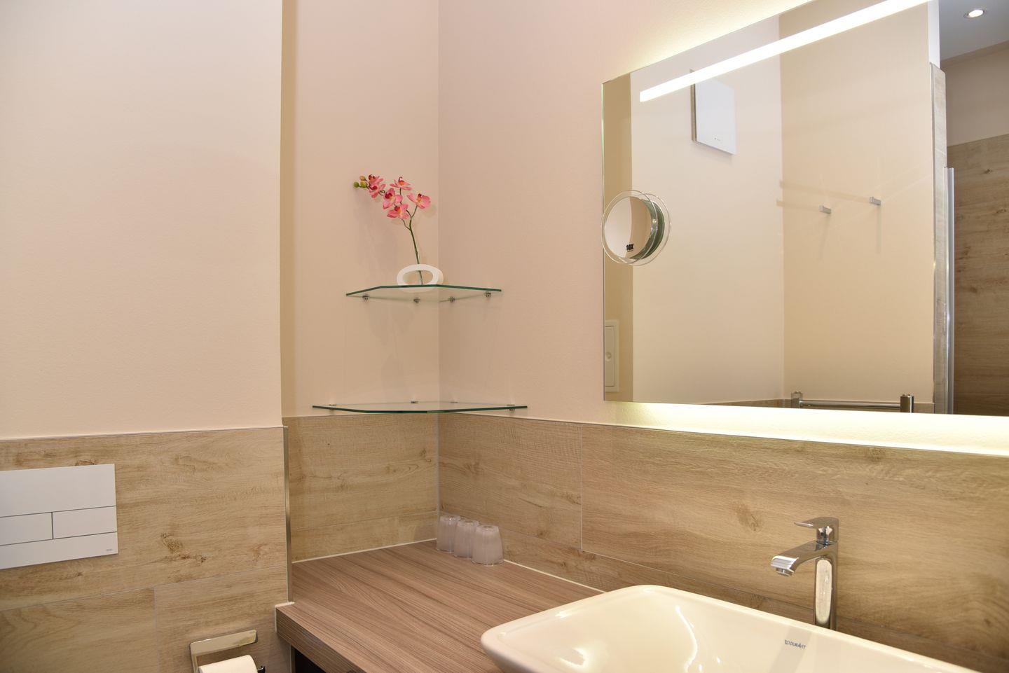 In der neu errichteten Suite befindet sich der Wohnbereich mit Couch- und Essecke und einer komfortabel ausgestatteten Küchenzeile, ein Bad mit ebenerdiger Dusche und das Schlafzimmer mit Boxspringbetten.