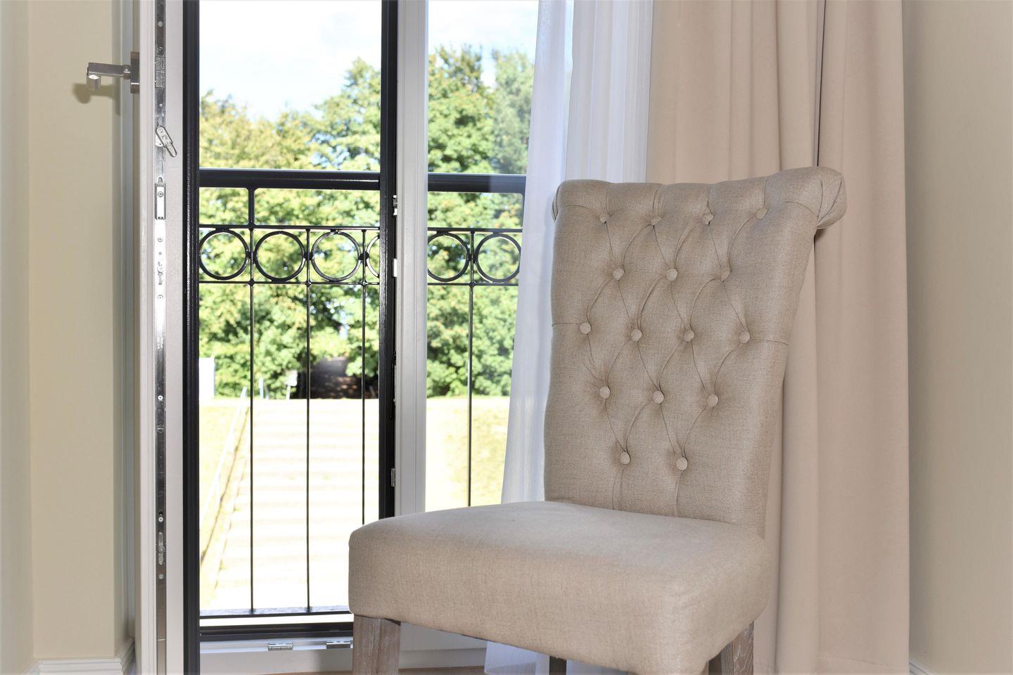 Sie wohnen direkt zur Seeseite in der 50 m² großen Luxus-Suite "Ostseewelle" im 1. OG.