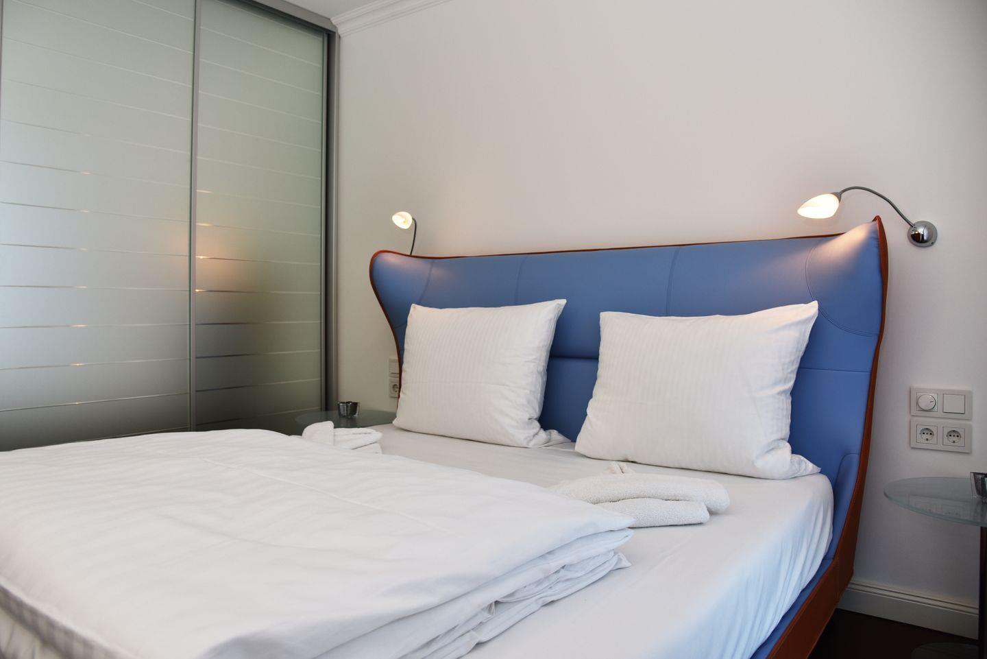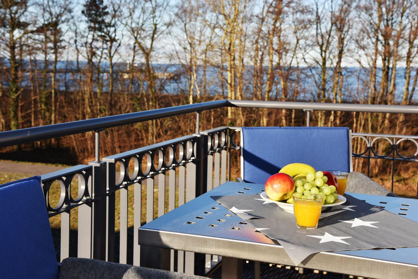 Ihre Suite in der 2. Etage mit Blick zur Ostsee (Oktober bis Mai) erreichen Sie vom Tiefgaragenplatz im Untergeschoss über einen gläsernen Fahrstuhl.