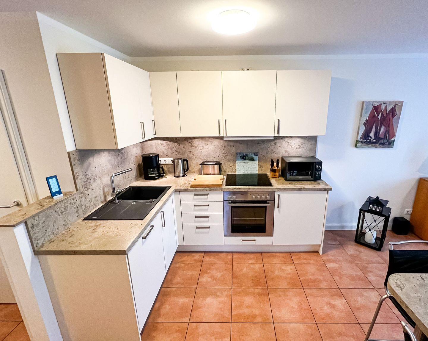 Die gesamte Ferienwohnung ist gefliest und mit einer Fußbodenheizung ausgestattet.