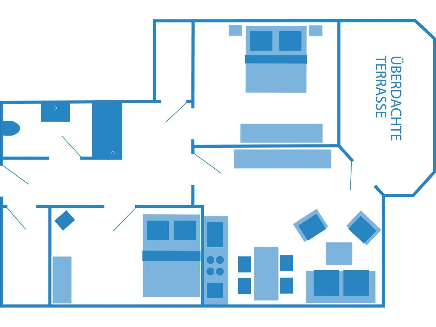 Dieser verfügt über gemütliche Sitzgelegenheiten, LED-TV und UKW-Radio sind zudem vorhanden.