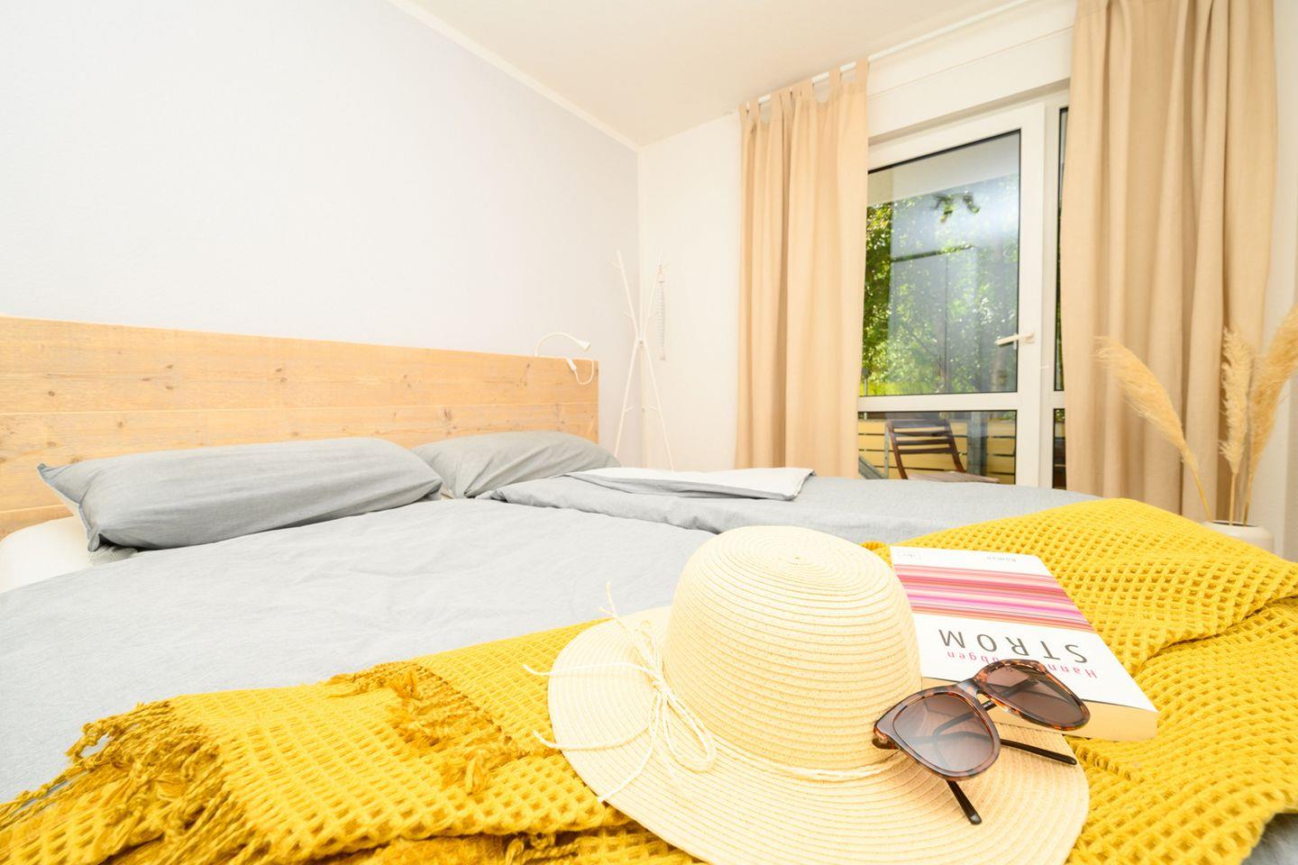 Die Ferienwohnung ist mit 2 Schlafzimmern, einem hellen offenen Wohnraum mit integrierter Küche, einem französischen Balkon & einem schönen Essplatz sehr großzügig geschnitten.