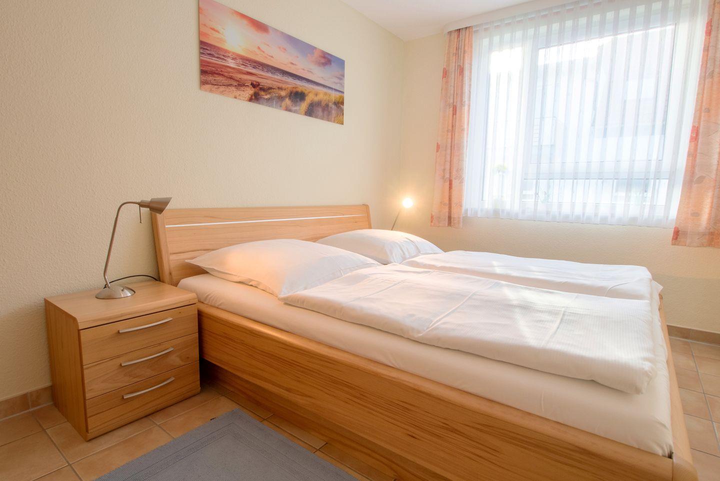 Zur Ferienwohnung gehört ein Wohnbereich mit Sofa und integrierter Küche, sowie ein separates Schlafzimmer mit Doppelbett.