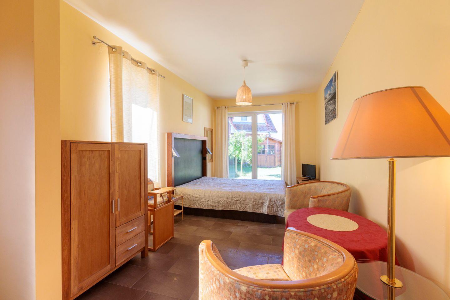 Die kleine Ferienwohnung ist 24 m² groß & verfügt über ein Wohn- Schlafbereich, Kühlschrank, Badezimmer mit bodentiefer Dusche.