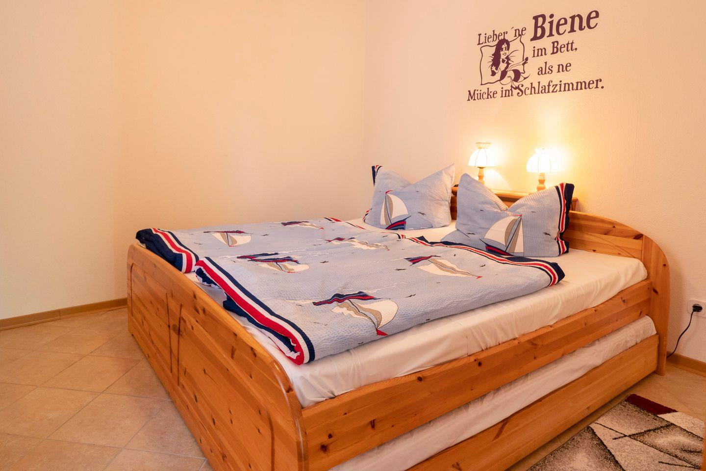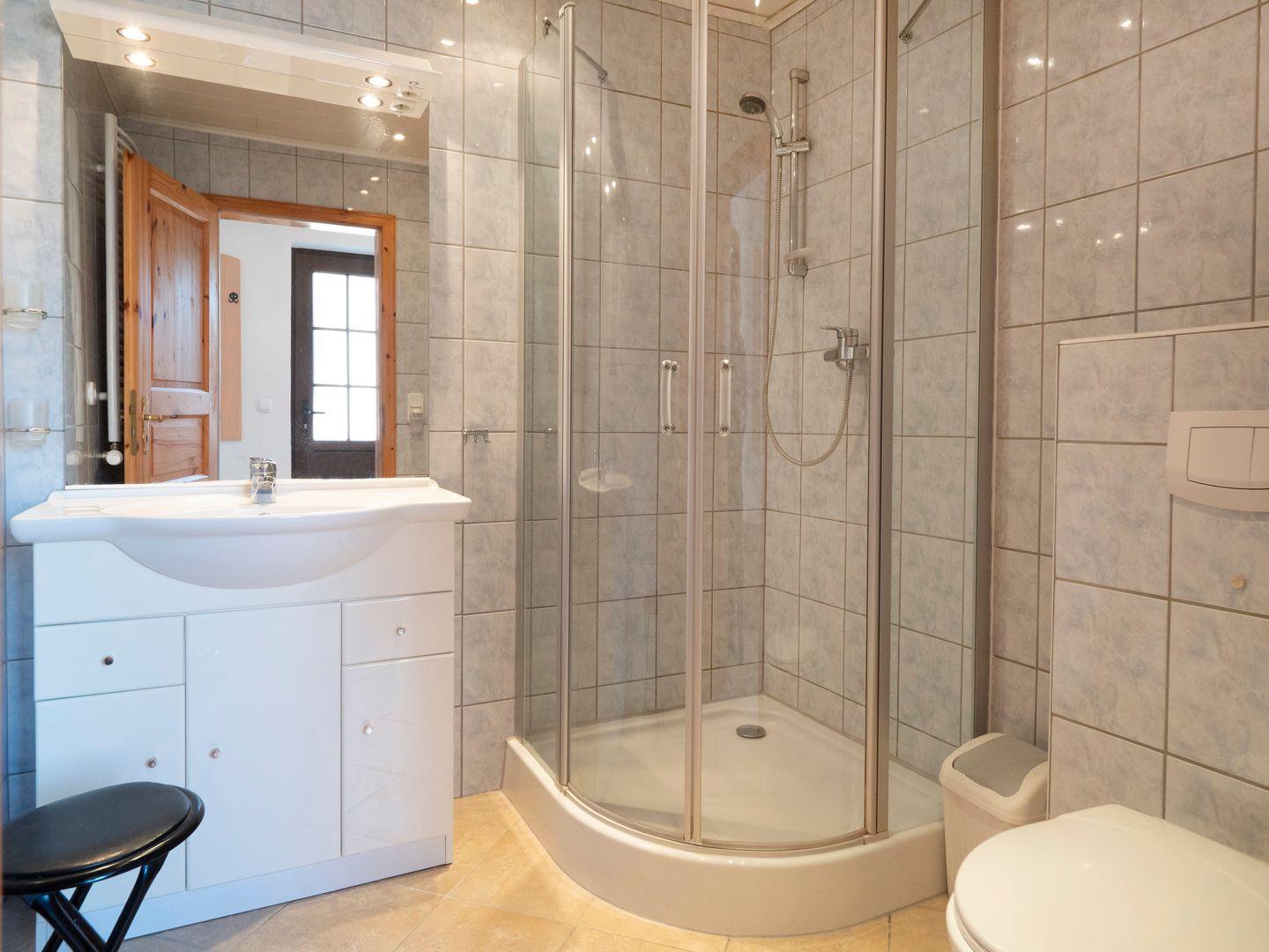Das Schlafzimmer lädt mit einer ruhigen und entspannenden Atmosphäre zum Ausruhen ein. Die hochwertige Ausstattung sorgt für erholsame Nächte, während das Badezimmer mit Dusche für wohltuende Entspannung nach einem aktiven Tag sorgt. Sie finden zudem eine Waschgelegenheit und einen großen Spiegel, der für zusätzlichen Komfort sorgt.