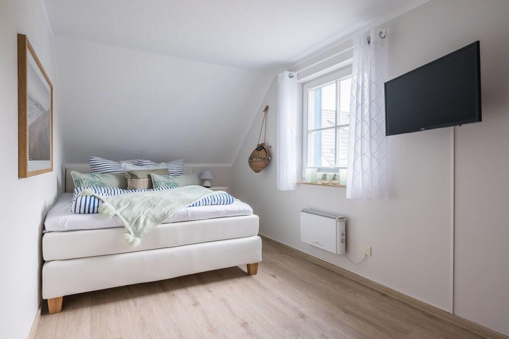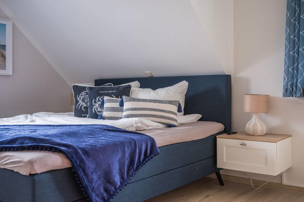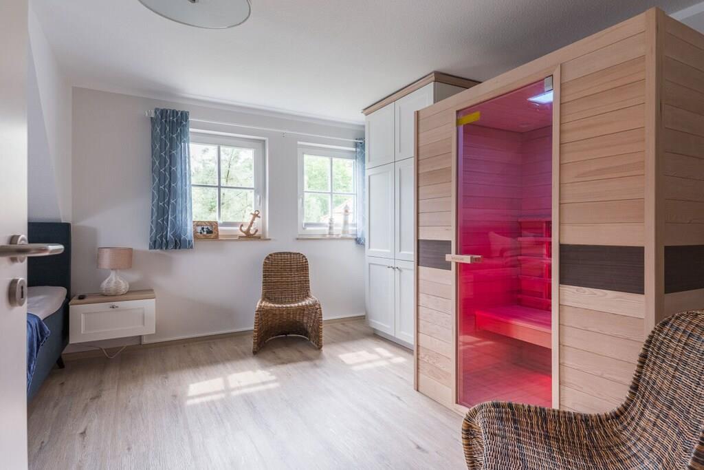 Dette smukke, kærligt og eksklusivt møblerede dobbelthus tilbyder alt, hvad du kan ønske dig for at nyde en ubekymret ferie. Huset har tre soveværelser, to komfortable badeværelser, en infrarød sauna og et fuldt udstyret køkken. De rummelige soveværelser og stuen har fladskærms-tv. En pejs i stuen sørger for hyggelig varme. Der er højhastighedsinternet (50 Mbps). Hvert værelse har mindst ét vindue udstyret med insektnet. Huset ligger på en stille sidegade, kun tre minutters gang fra den smukke strand. Strandadgangspunkt 25 og 26 er de nærmeste – hundestranden ligger ved strandadgangspunkt 27. Vi ønsker dig en dejlig ferie!