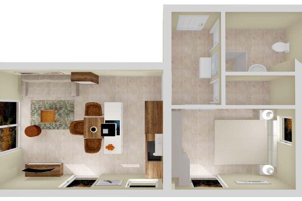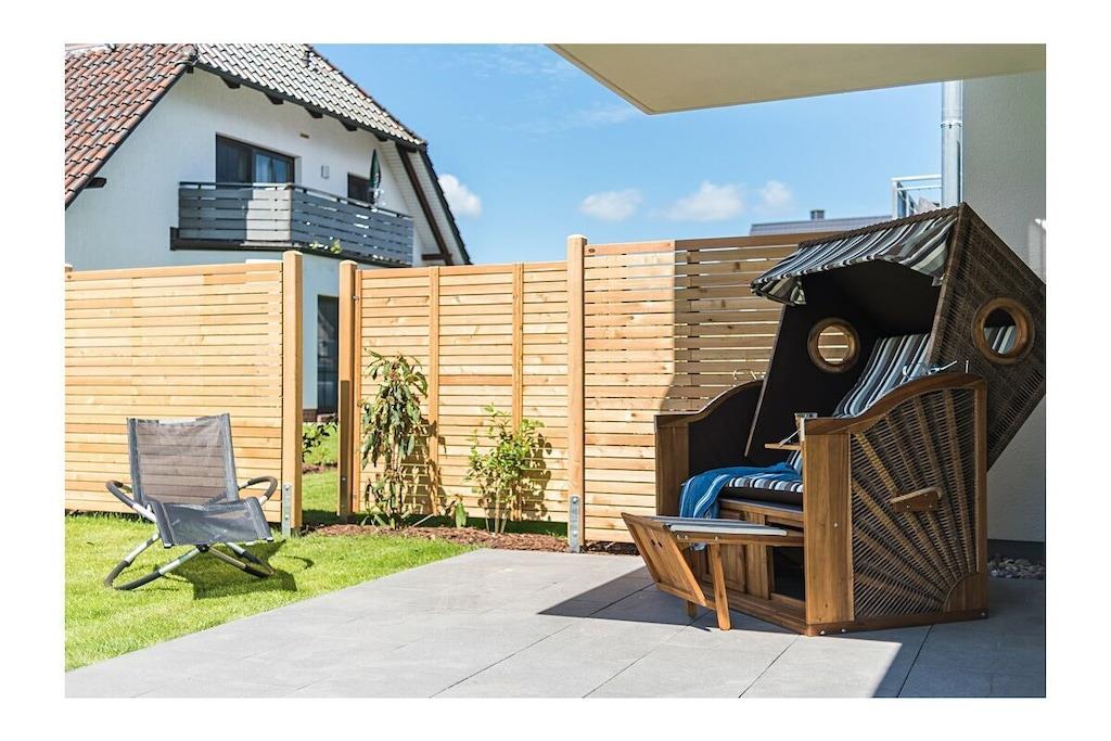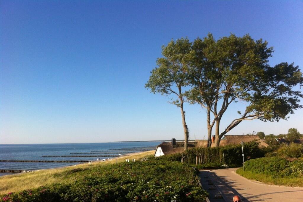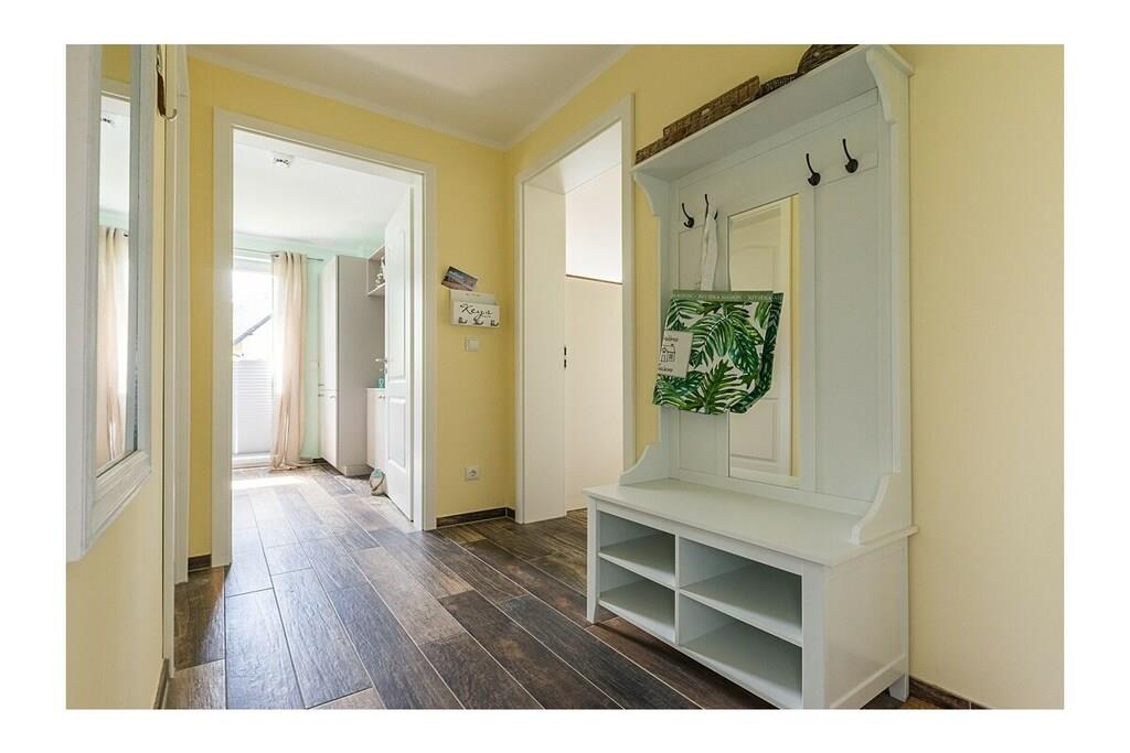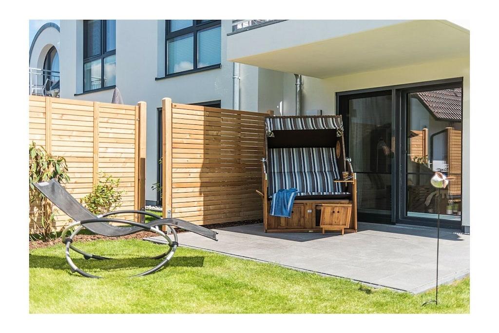 Die hochwertig eingerichtete Ferienwohnung im Herzen von Zingst ist der ideale Ort für ruhige und entspannte Stunden am Meer. Sie verfügt über einen komfortablen Wohnbereich mit einem Flatscreen-TV, einer offenen Küche und gemütlichem Essbereich. Die Küche ist voll ausgestattet und lässt keine Wünsche offen. Vom Wohnzimmer aus hat man direkten Zugang zu den beiden großen möblierten Terrassen und kann hier wunderschöne Sommerabende verbringen. Kinder bis zu 12 Jahren können gerne im Wohnzimmer auf dem Schlafsofa den Tag ausklingen lassen. Durch ihre komfortable Lage, erreichen Sie in nur wenigen Minuten fußläufig den sehr nahen Strand. und Shoppingmöglichkeiten und Restaurants befindet sich in unmittelbarer Umgebung.