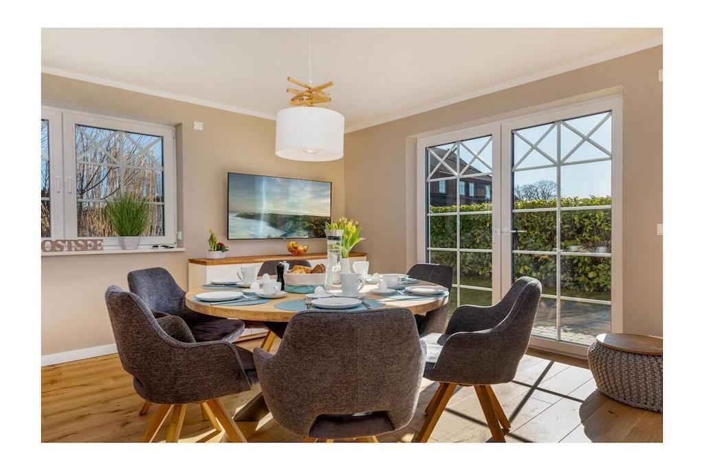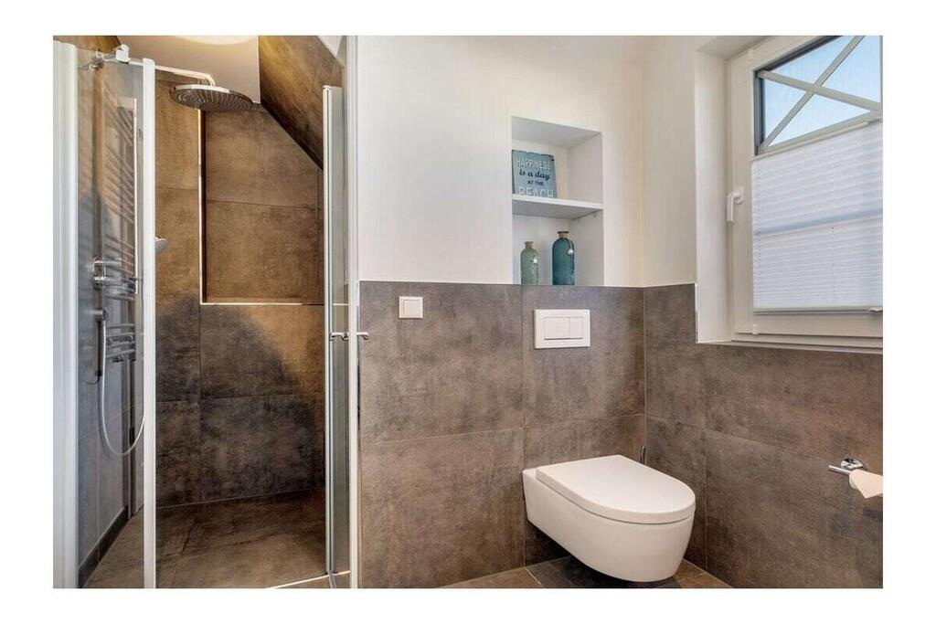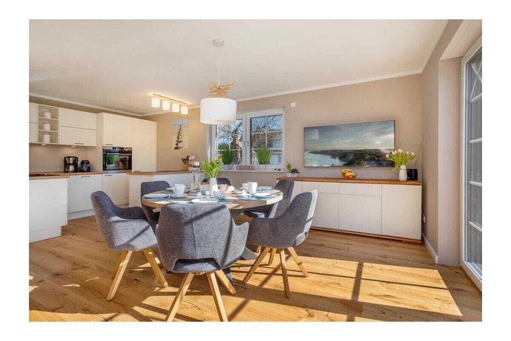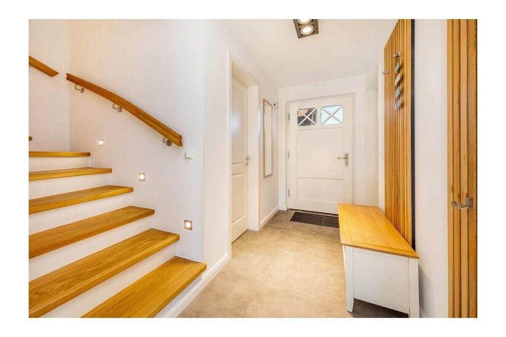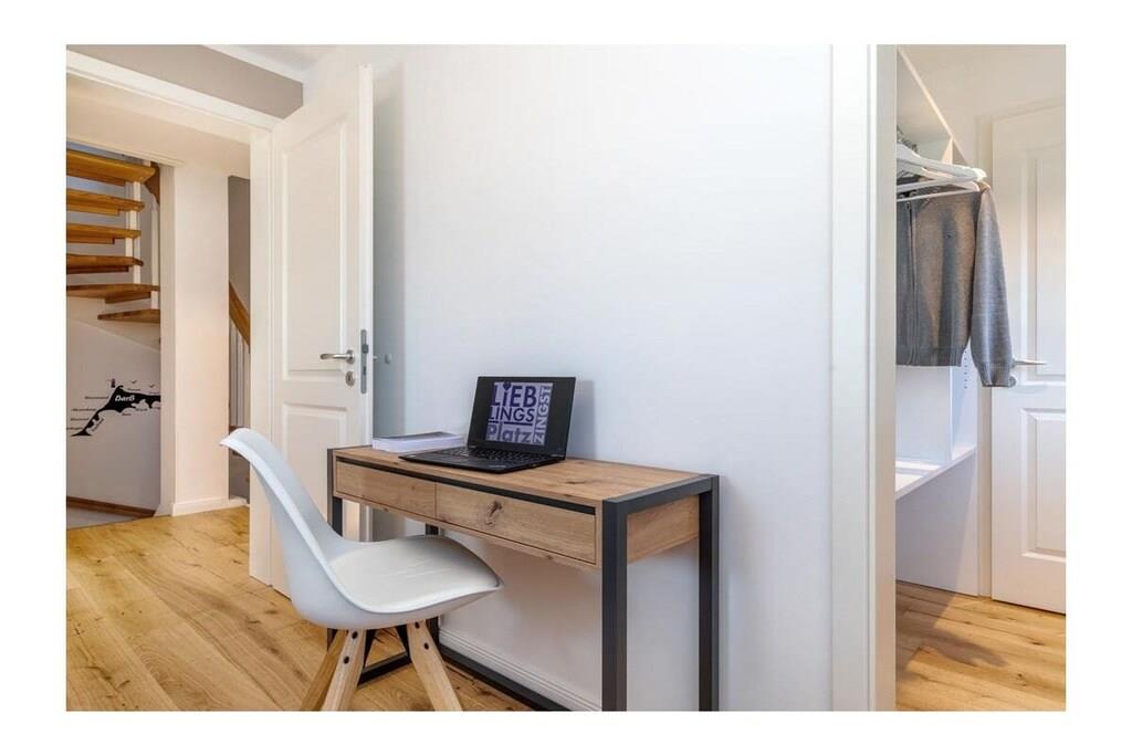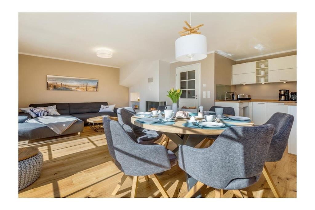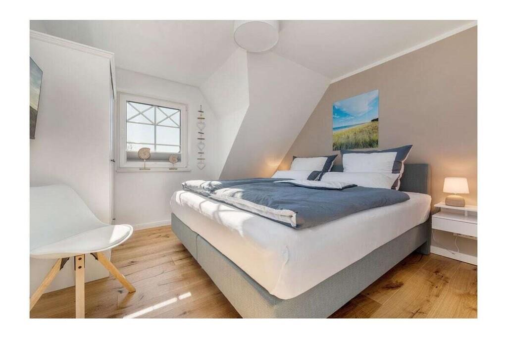 Viel Platz auf 105qm, geschmackvoll und modern eingerichtet und an alles gedacht, damit unser Ferienhaus für Sie zum LieblingsPlatz für einen traumhaften Urlaub wird. Ob mit Freunden oder der Familie, hier werden sich alle wohlfühlen. Im Ortskern von Zingst, in einer gewachsenen Struktur, befindet sich die im Jahr 2021 erbaute 105 m² große Doppelhaushälfte mit Garten, Schuppen und zwei Parkplätzen sowie einer E-Ladesäule. Wir bieten Platz für bis zu sechs Erwachsene mit drei Schlafzimmern (2x Doppel-Boxspringbett 180x200 und 2x Einzelbett 90x200) und zwei Bädern sowie einem großzügigen Wohn- Essbereich mit Sofa und Kamin, großem Esstisch und offener voll ausgestatteter Küche sowie Zugang zur sonnigen Süd- West Terrasse und kleinem Garten. Hier können Sie im Strandkorb den ganzen Tag die Sonne genießen. Komfort und Gemütlichkeit bieten: - Gaskamin - Echtholzböden mit Fußbodenheizung - Sauna - Badewanne sowie großzügige Walk-in- Duschen mit Rainshower - Rolläden im Erdgeschoss und Plissees zur Verdunkelung in allen Schlafzimmern - Insektenschutz in allen Räumen - Fernseher im Wohnzimmer sowie 2 Schlafzimmern - Kostenfreies W-LAN - Waschmaschine und Trockner Hier sehen Sie einen 3D Rundgang durch das Haus. https://my.matterport.com/show/?m=wHDnyd88HCC