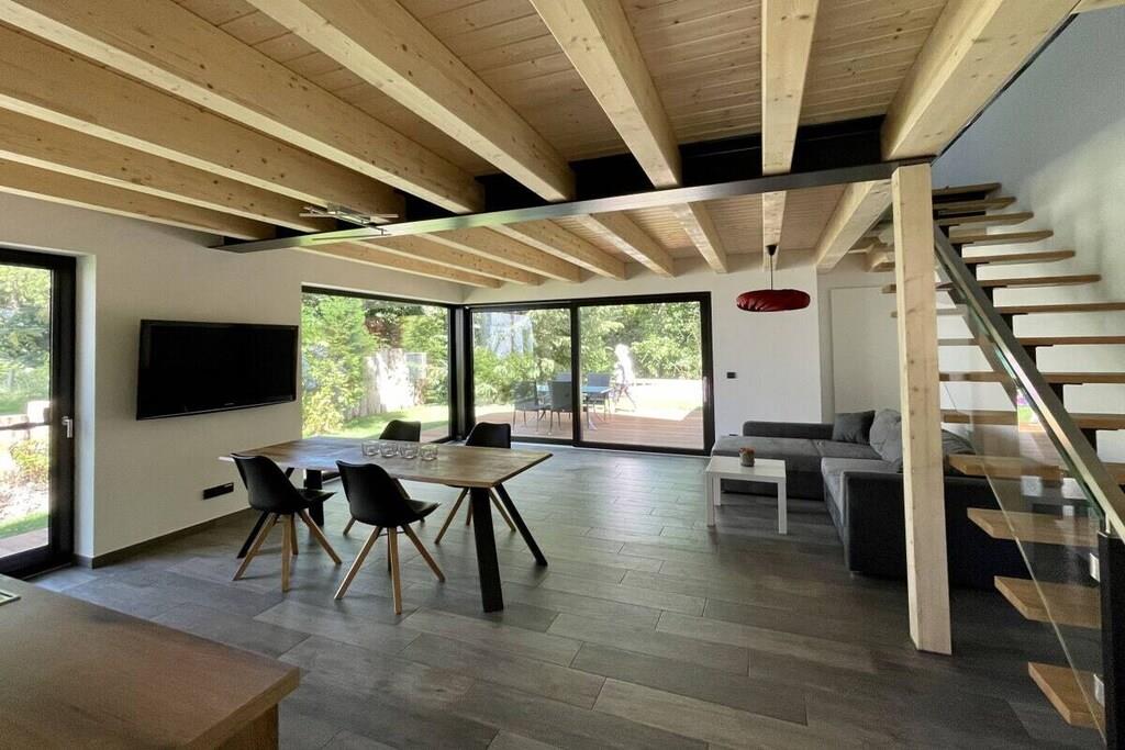 Stueetage: (entre(, varme), stue / spisestue(, , , , , tekøkken, Fjernsyn, spisebord, kakkelovn, kogeplade, komfur, kaffemaskine, ovn, grill, opvaskemaskine , køleskab, fryser, varme, klimaanlæg, barnestol, føntørrer, insektnet), guest toilet(, toilet, håndvask, varme)) Loft: (entre(varme, insektnet), soveværelse(, , dobbeltseng, Fjernsyn, varme, klimaanlæg, insektnet), soveværelse(, , dobbeltseng, Fjernsyn, varme, klimaanlæg, insektnet), badeværelse(, toilet, bruser, håndvask, varme)) , varme, terrasse(havemøbler), parkering