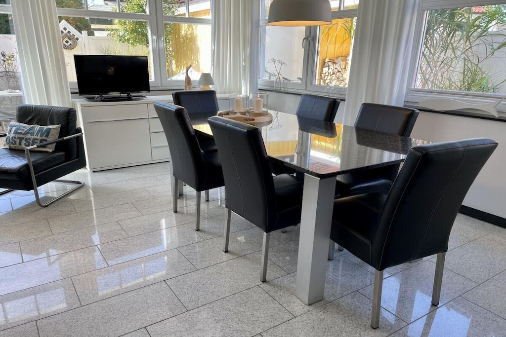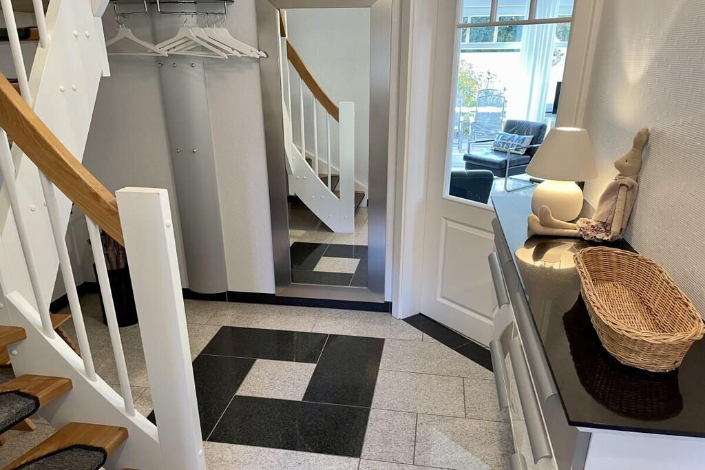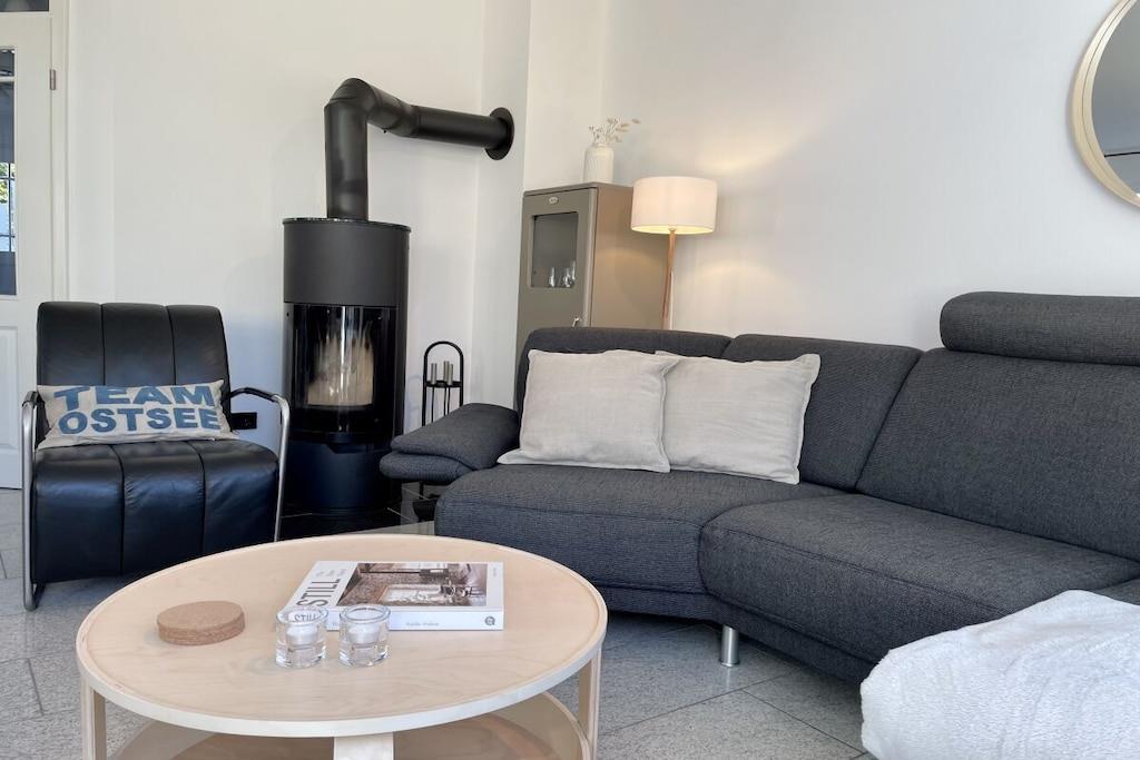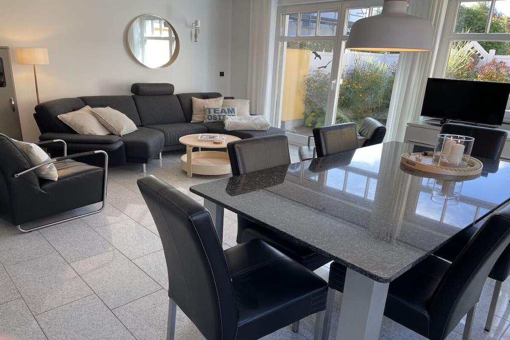 Lyse værelser og eksklusive, børnevenlige faciliteter venter dig: lyse granitgulve, et køkken af høj kvalitet, et dobbelt håndvaskebord i natursten, bruseniche i glas og gulvvarme. Vi tilbyder en rummelig entré, et bryggers med vaskemaskine og tørretumbler (gratis), to brusebadeværelser, tre soveværelser med tv, en stor opholdsstue med pejs til hyggelige aftener, Wi-Fi og et veludstyret køkken. Udenfor inviterer en overdækket, sydvestvendt terrasse dig til at slappe af. Dobbelt babyudstyr (barneseng, højstol osv.) Tilbring afslappende dage i et næsten nyt, kærligt møbleret feriehus med luksuriøse faciliteter. Vi glæder os til at byde dig velkommen!