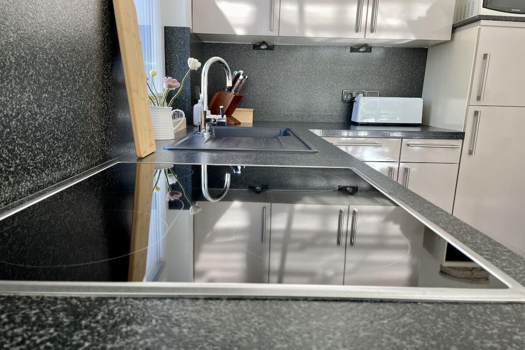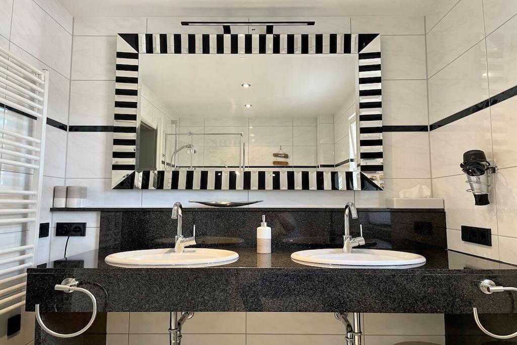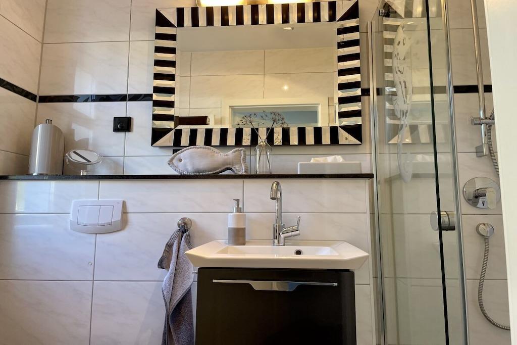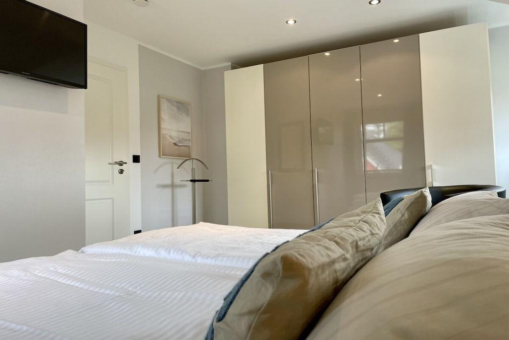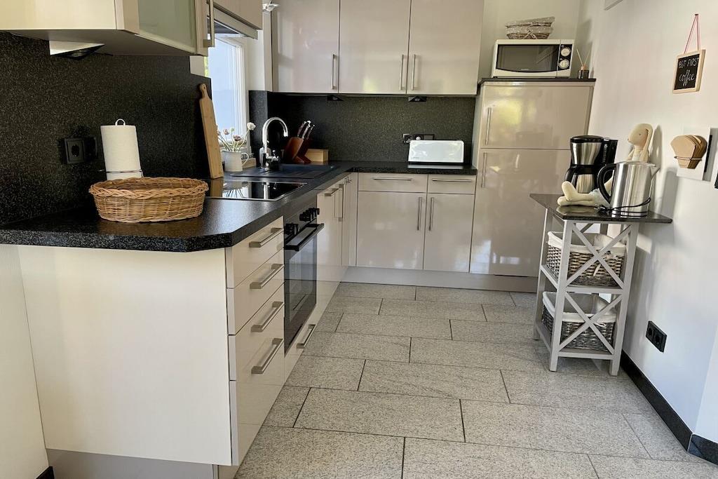 Lyse værelser og eksklusive, børnevenlige faciliteter venter dig: lyse granitgulve, et køkken af høj kvalitet, et dobbelt håndvaskebord i natursten, bruseniche i glas og gulvvarme. Vi tilbyder en rummelig entré, et bryggers med vaskemaskine og tørretumbler (gratis), to brusebadeværelser, tre soveværelser med tv, en stor opholdsstue med pejs til hyggelige aftener, Wi-Fi og et veludstyret køkken. Udenfor inviterer en overdækket, sydvestvendt terrasse dig til at slappe af. Dobbelt babyudstyr (barneseng, højstol osv.) Tilbring afslappende dage i et næsten nyt, kærligt møbleret feriehus med luksuriøse faciliteter. Vi glæder os til at byde dig velkommen!