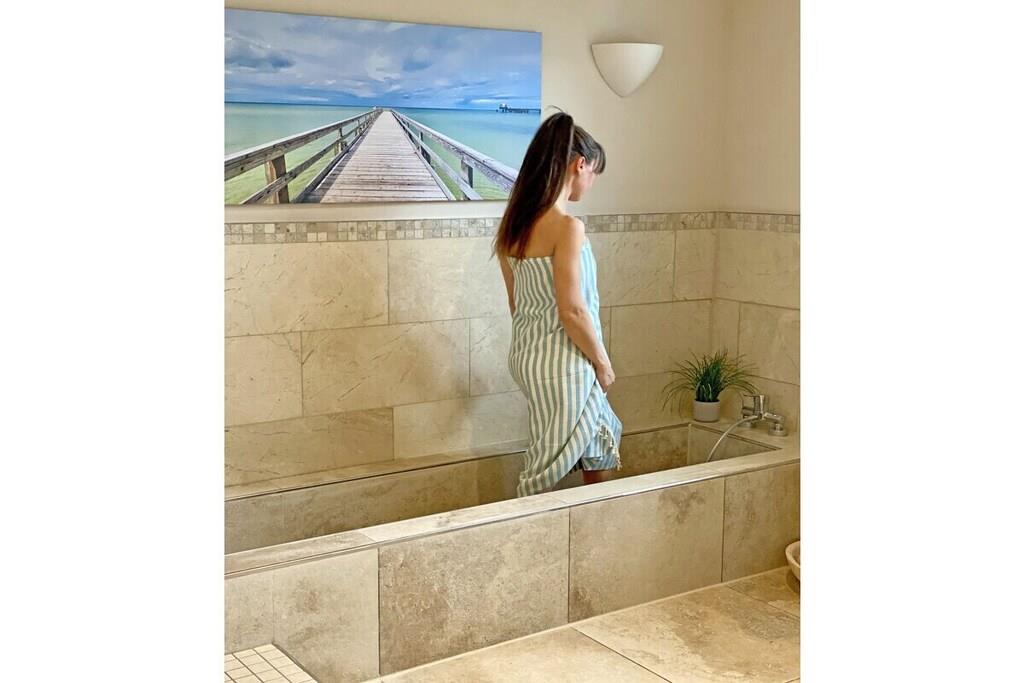 Et magisk tilflugtssted for krop og sjæl – for dem, der sætter pris på noget særligt – i et af de smukkeste stråtækte huse i Zingst. Vores ferielejlighed ligger på anden sal under loftet; de høje lofter giver denne rummelige treværelseslejlighed (til 2-4 personer) et særligt præg. Kærligt indrettet i varme farver med 5-stjernet komfort! En sydvestvendt loggia. Wellness-området på stedet har tre saunaer, et Kneipp-bassin og et dejligt afslapningsområde – let tilgængeligt i badekåben. En sand drømmelejlighed!