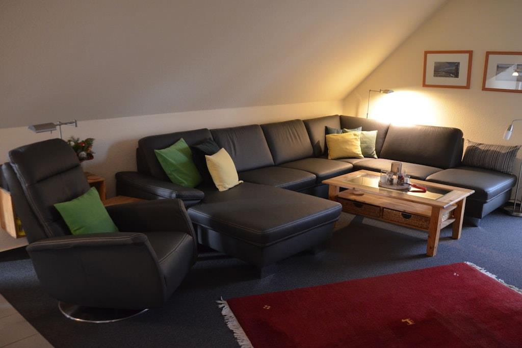 På 1. etage: (entre(, ), stue / spisestue(, , tekøkken, bibliotek, Fjernsyn, spisebord, DVD-afspiller, Blu-ray afspiller, radio, CD-afspiller, stereoanlæg, kogeplade, elkedel, brødrister, kaffemaskine, opvaskemaskine , køleskab, fryser), soveværelse(dobbeltseng), soveværelse(dobbeltseng), badeværelse(, toilet, bruser, håndvask, føntørrer)) , , Internetadgang, tørretumbler, vaskemaskine, balkon(havemøbler), varme, parkering, strygebræt, strygejern