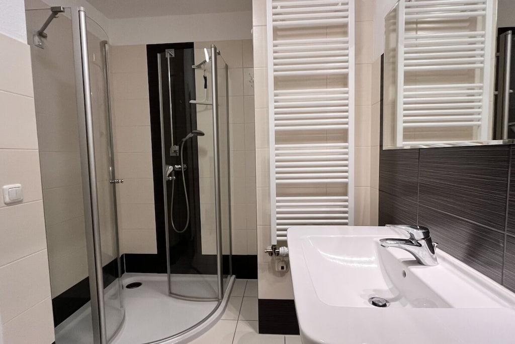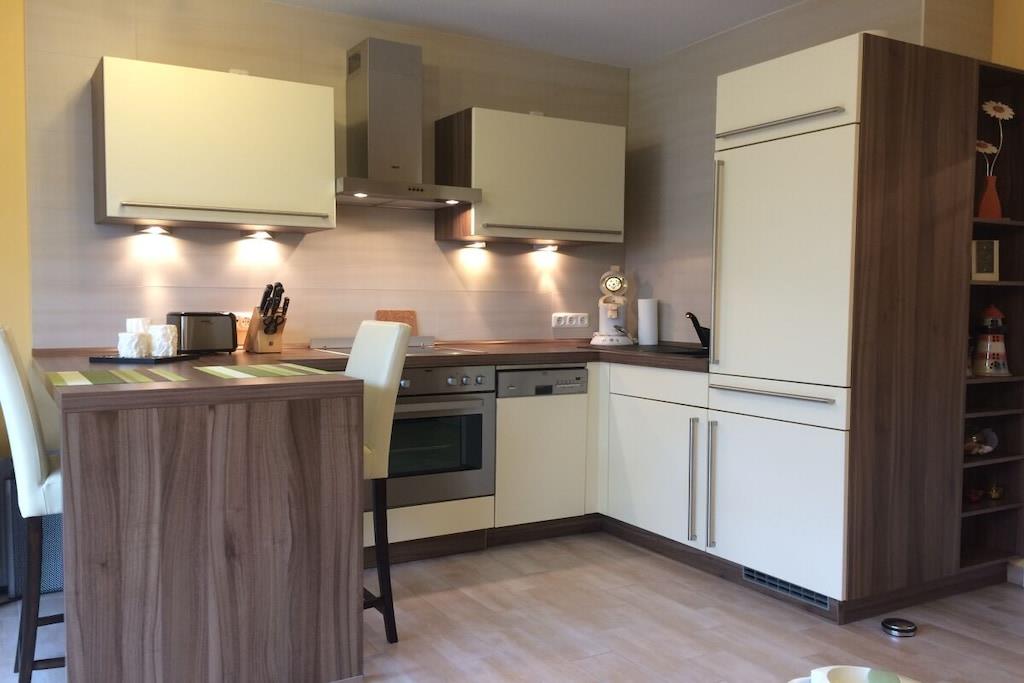 Ferielejligheden ligger i en bygning med flere lejligheder, meget tæt på stranden. Du kan forvente en moderne møbleret lejlighed af høj kvalitet med en rummelig stue med integreret køkken og en komfortabel sofa med pejs. Det separate soveværelse har en dobbeltseng. Under dit ophold har du adgang til en gratis parkeringsplads og et privat cykelskur lige ved siden af bygningen. Din egen store terrasse er møbleret med havemøbler og grill.