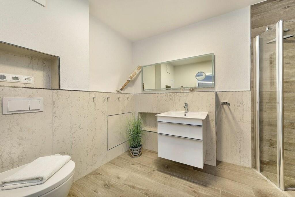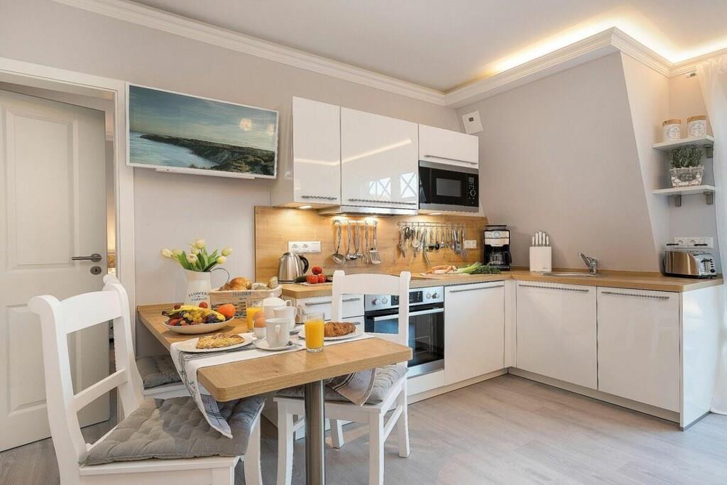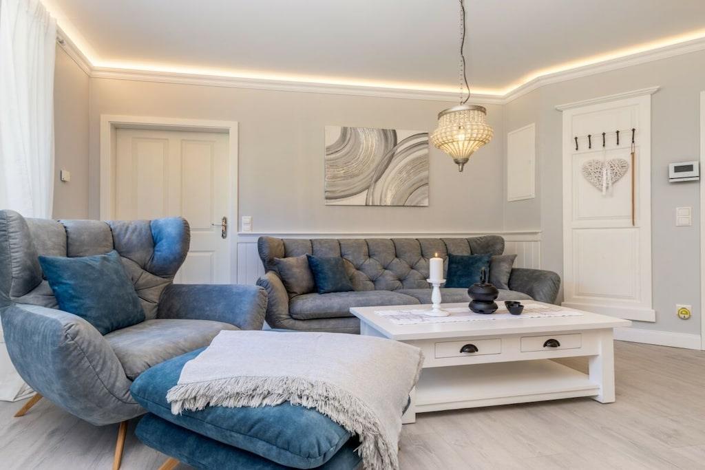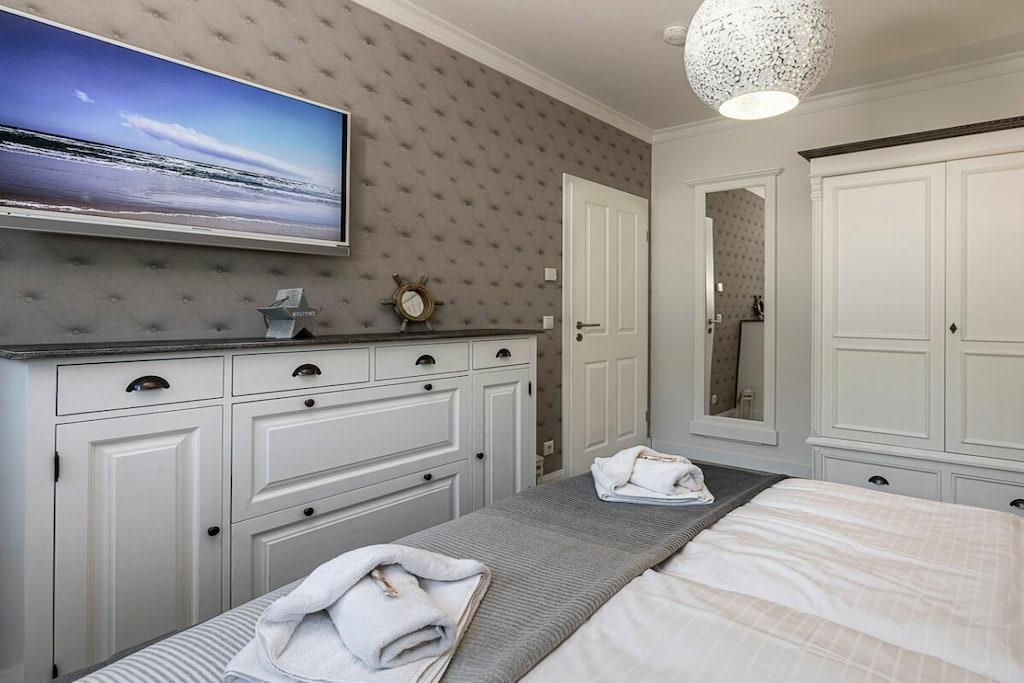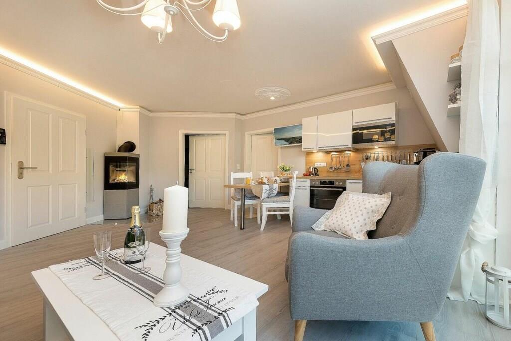 Du kan nyde ren luksus, da ferielejligheden er udstyret med en pejs. Efter lange gåture på stranden kan du slappe af i det lille, men charmerende wellness-område på øverste etage. Der kan du slappe af i saunaen med vinduet eller tænde din egen pejs i din lejlighed. Familiedrevet virksomhed, kærligt indrettet i maritim stil.