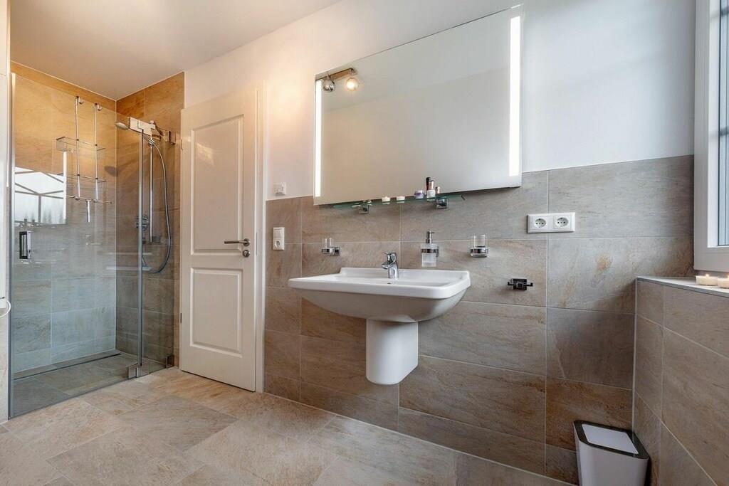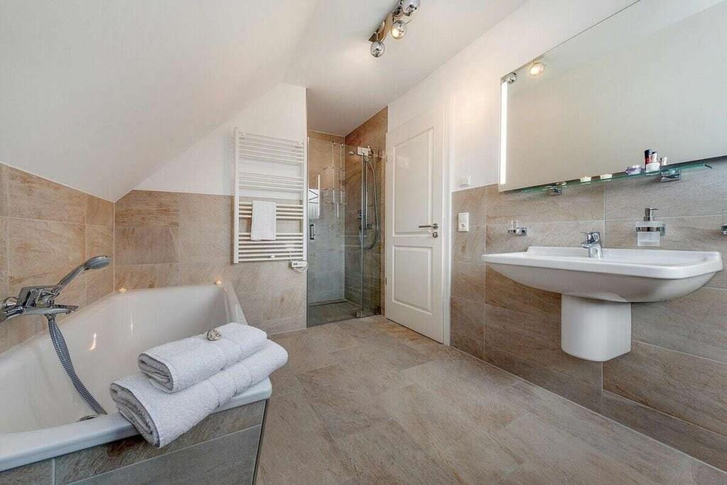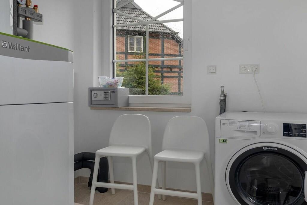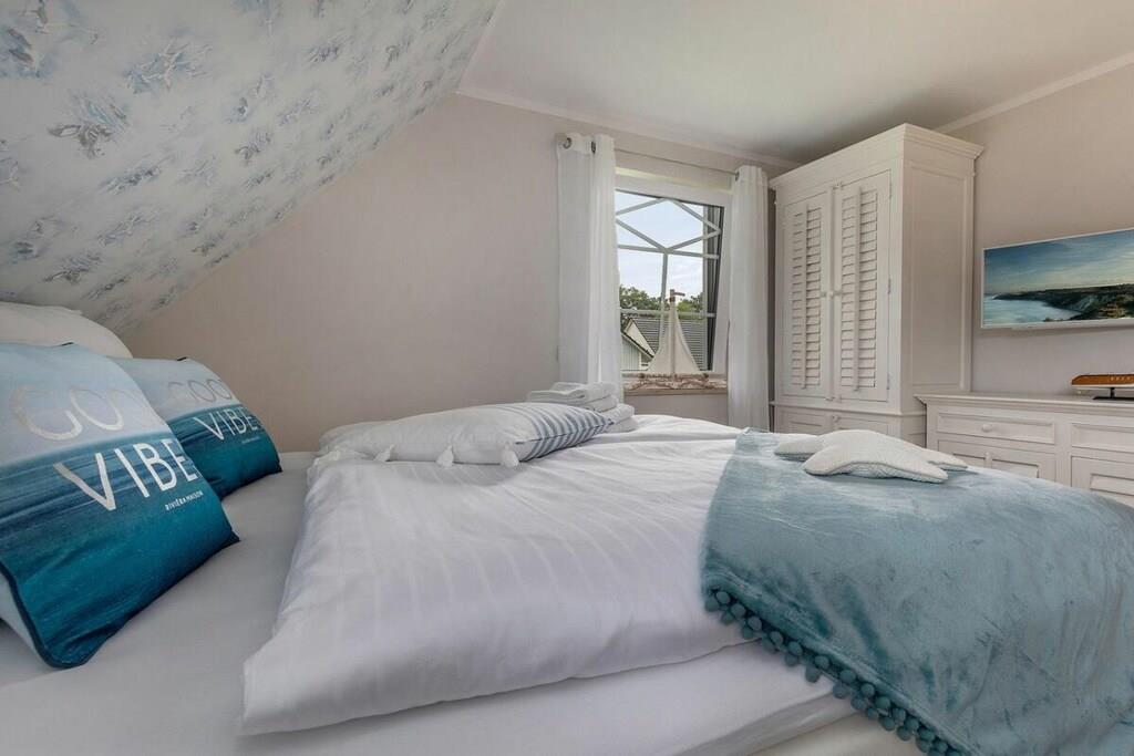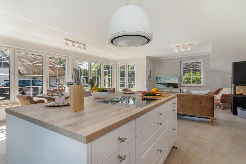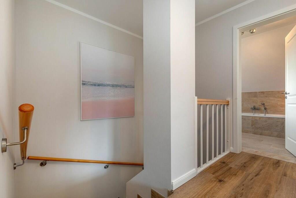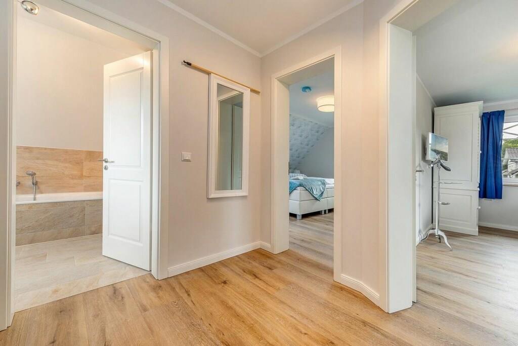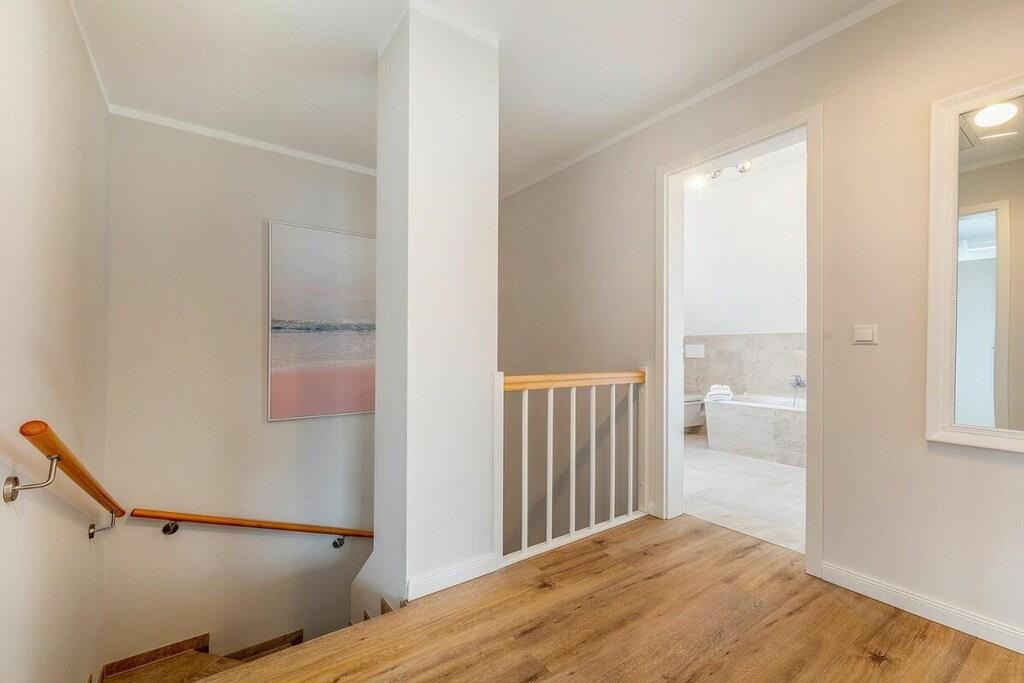 Beliggenheden af dette smukke, nye hus er ideel til afslapning. Det ligger for enden af en blind vej. Stranden kan nås på få minutter via bymidten, eller du kan tage den idylliske cykelsti gennem skoven og komme direkte til den hvide Østersøstrand. Stueetagen indeholder: rummelig, lys stue-spisestue med køkkenø og pejs i opholdsstuen, et stort brusebadeværelse med sauna, et opbevaringsrum med vaskemaskine og tørretumbler samt en stor entré. Ovenpå er der: 2 soveværelser, hver med 180x200 cm boxmadras, et andet soveværelse med en enkeltseng og et familiebadeværelse med bruser og badekar. Udendørs: stor balkon, terrasse med havemøbler, parkeringsplads.