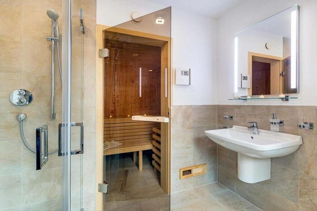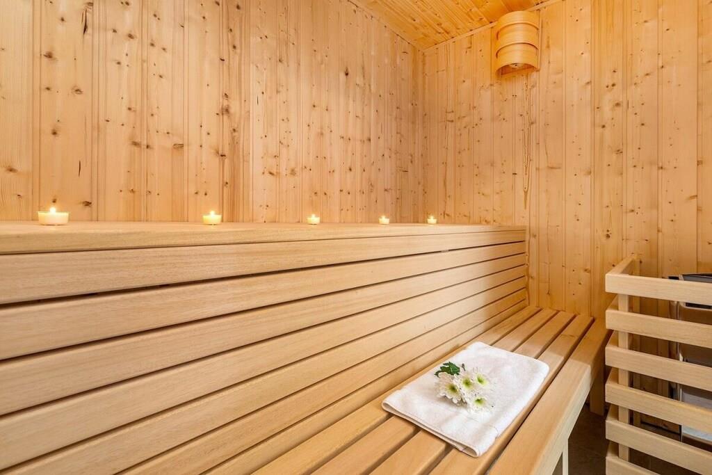 Stue(, Fjernsyn, spisebord, pejs, radio, CD-afspiller), Køkken(kogeplade, elkedel, brødrister, kaffemaskine, ovn, mikrobølgeovn, opvaskemaskine , køleskab), soveværelse(enkeltseng, dobbeltseng, dobbeltseng), soveværelse(enkeltseng, dobbeltseng, dobbeltseng), soveværelse(enkeltseng, dobbeltseng, dobbeltseng), badeværelse(, , toilet, badekar, bruser, håndvask, føntørrer), badeværelse(, , toilet, badekar, bruser, håndvask, føntørrer), loungerum(sauna), Internetadgang, tørretumbler, vaskemaskine, balkon, terrasse(havemøbler), have, havemøbler, parkering, strygebræt, strygejern
