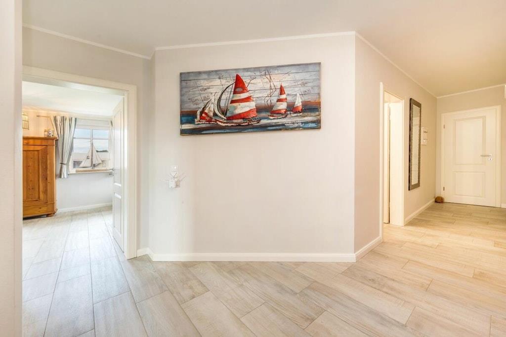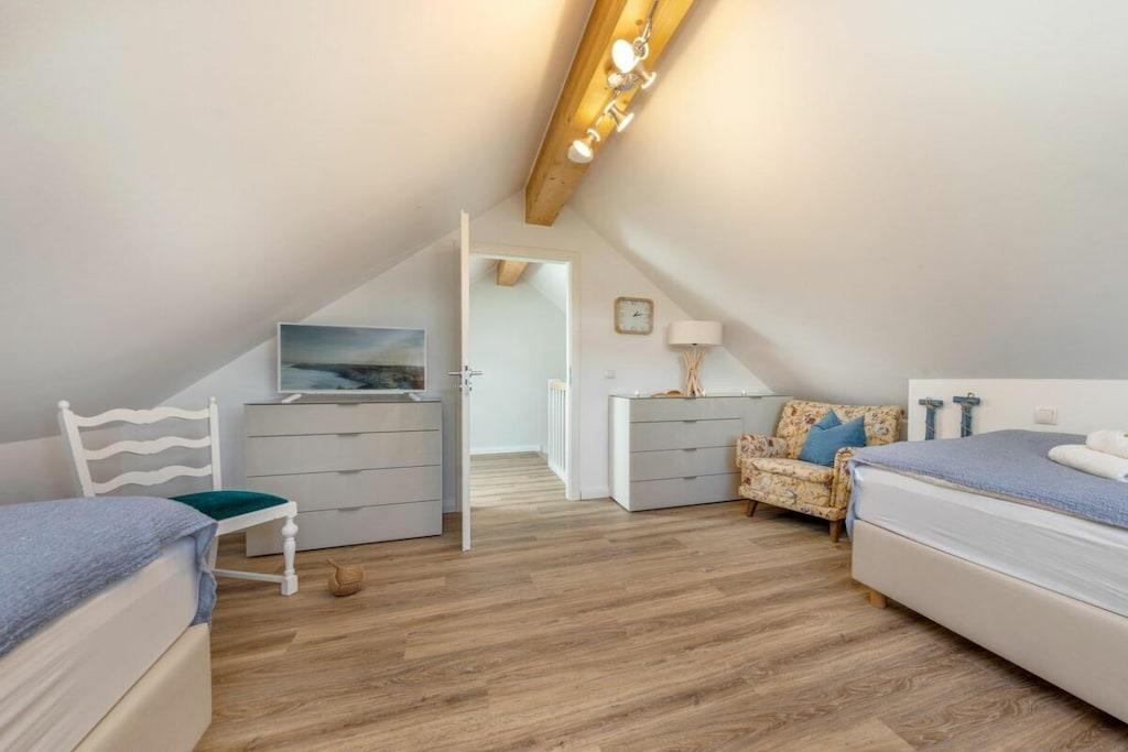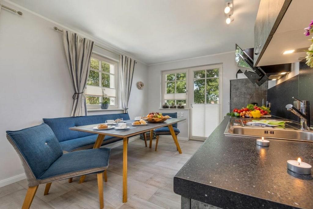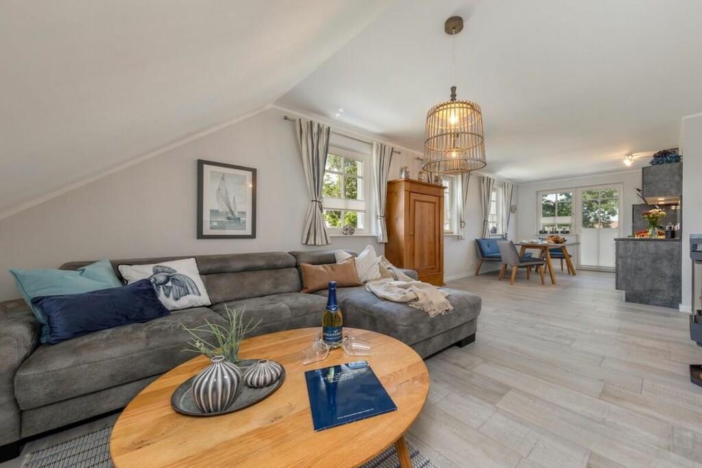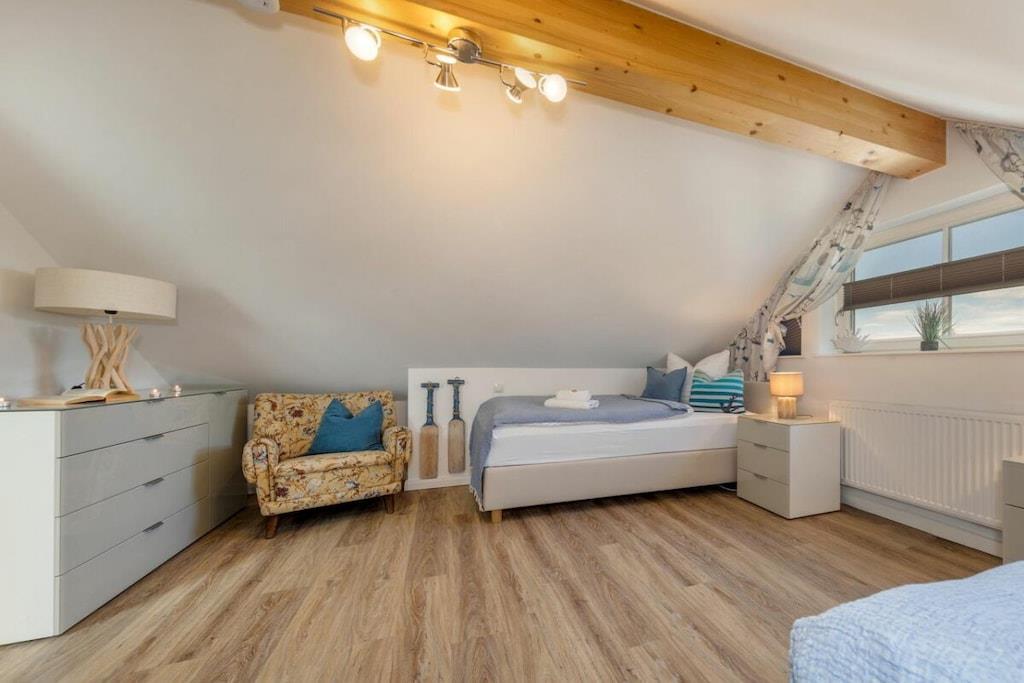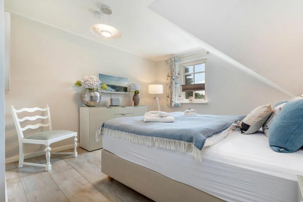 Denne smukke, nybyggede lejlighedsbygning med fire lejligheder i rolige omgivelser er perfekt til afslappende dage. Ferielejligheden ligger på øverste etage og har en fantastisk og meget rummelig balkonterrasse med havemøbler. Den rummelige stue-spisestue har et fuldt udstyret køkken. En pejs indbyder til hyggelige aftener. Badeværelset har bruseniche og badekar. Soveværelset har en boxmadras, der måler 180 cm x 200 cm. Det andet soveværelse er møbleret med to enkeltsenge, der måler 90 x 200 cm. Begge soveværelser og stue-spisestuen er udstyret med et fjernsyn. Der er også et aflåseligt cykelopbevaringsrum udenfor (i stueetagen). Nyd din ferie i vores smukke Zingst ved Østersøen.