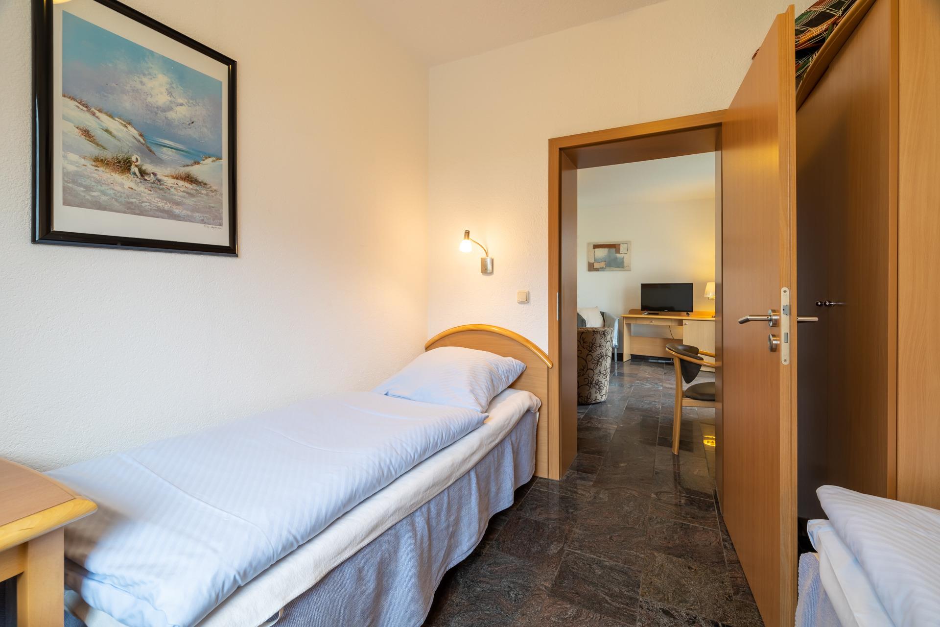 Schlafzimmer: Zwei komfortable Schlafzimmer mit einem Doppelbett und 2 Einzelbetten, weichen Bettwaren und bezogenen Betten.