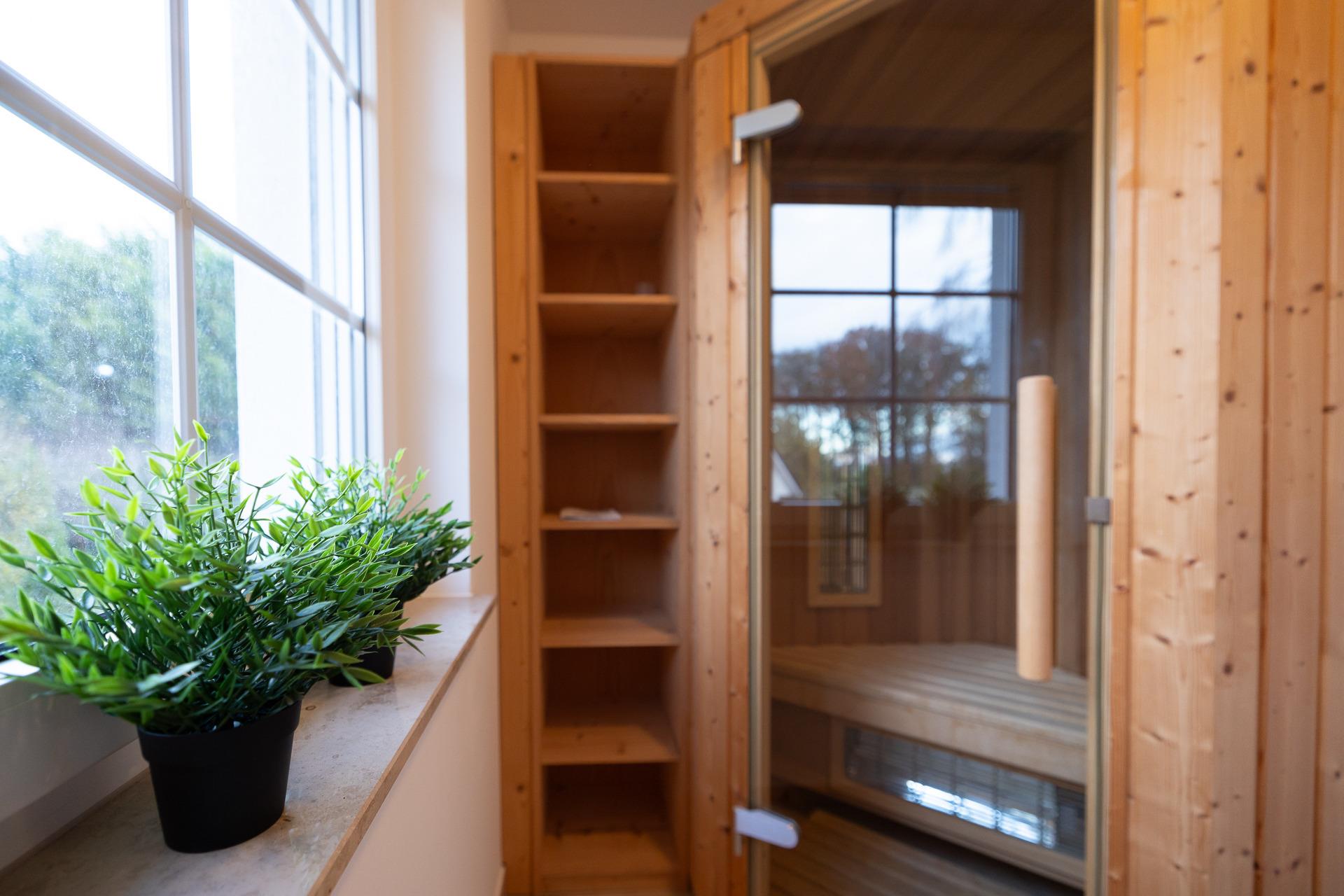 Ebenfalls im 1 Obergeschoss das große Badezimmer mit Badewanne, Dusche und WC sowie die hauseigene Sauna.