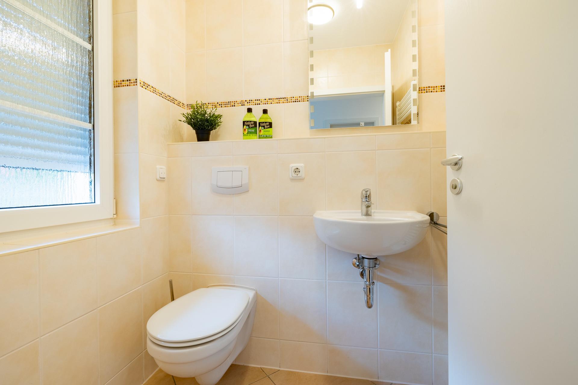 Im Erdgeschoss erwartet Sie ein großer Wohn Essbereich sowie ein Gäste WC und ein Hauswirtschaftsraum mit Gästedusche und Waschmaschine.
