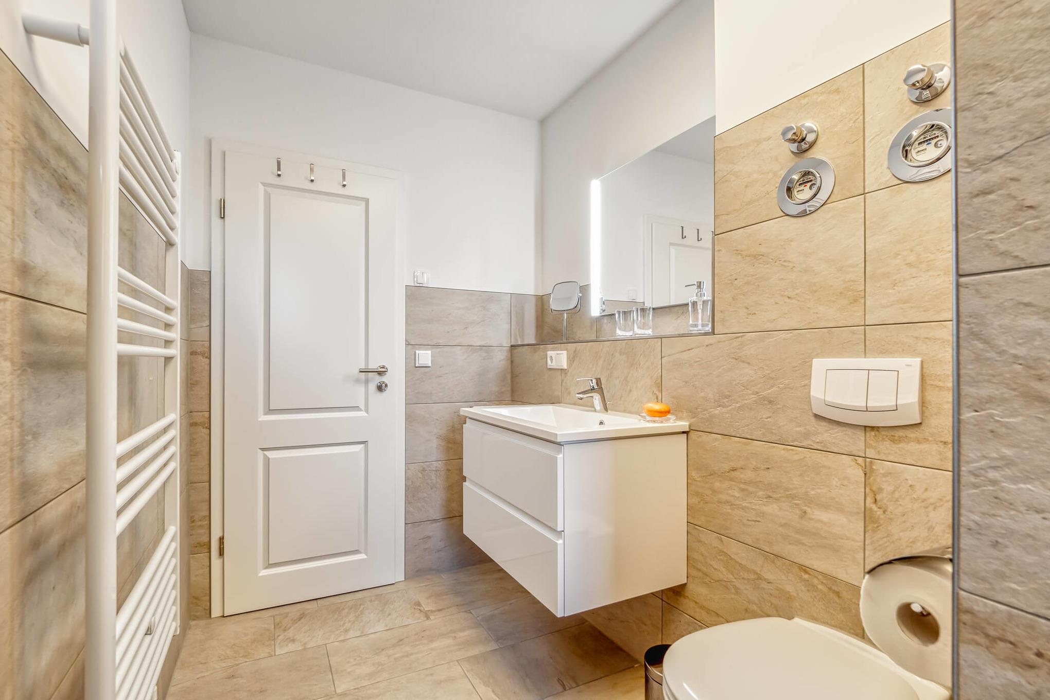 Die neu eingerichtete Wohnung eignet sich perfekt für Paare, bietet durch die Schlafcouch im Wohnzimmer jedoch zusätzlichen Platz für eine dritte Person.