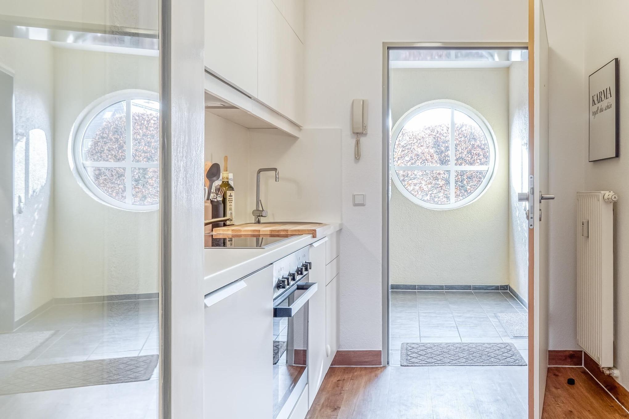 Ein großer Einbauschrank bietet viel Stauraum. Picknickkorb, Picknickdecke, Strandmuschel, Gesellschaftsspiele , Regenschirme und eine kleine Hundeausstattung zur kostenlosen Nutzung runden das Angebot in der Wohnung ab.