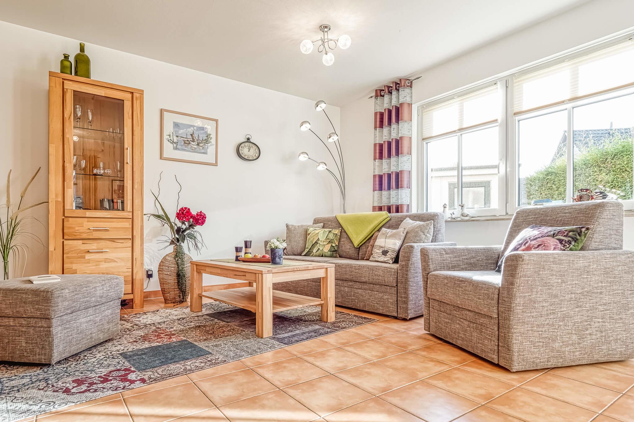 Zu Ihrer Ferienwohnung gehören ein schönes, geräumiges und helles Wohnzimmer mit einer offenen und sehr gut ausgestatteten Küche, ein liebevoll eingerichtetes Schlafzimmer, ein modernes Bad mit Dusche und eine kleine Abstellkammer.