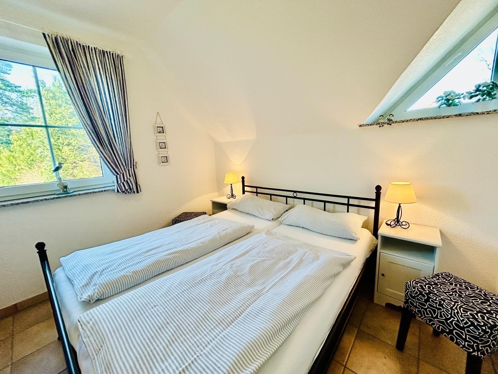 1 Schlafzimmer ist mit einem Doppelbett ausgestattet, das andere mit 2 Einzelbetten.