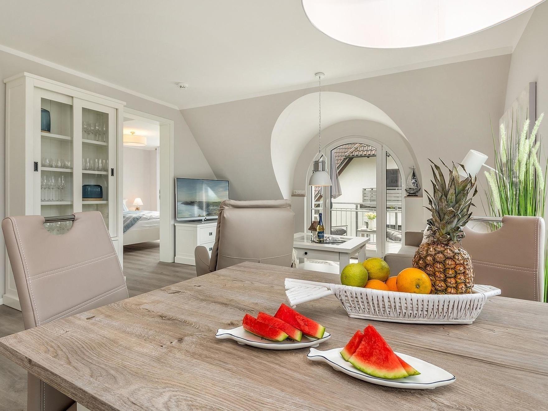 Die Ferienwohnung bietet eine gemütliche Atmosphäre und modernes Design. Die lichtdurchfluteten Räume sorgen für ein angenehmes Wohnklima, während die ruhige Lage Entspannung pur verspricht. Eine voll ausgestattete Küche ermöglicht Ihnen selbstständiges Kochen. Auf dem Balkon kann man den Tag bei einem herrlichen Ausblick ausklingen lassen. Ideale Bedingungen für einen erholsamen Aufenthalt.