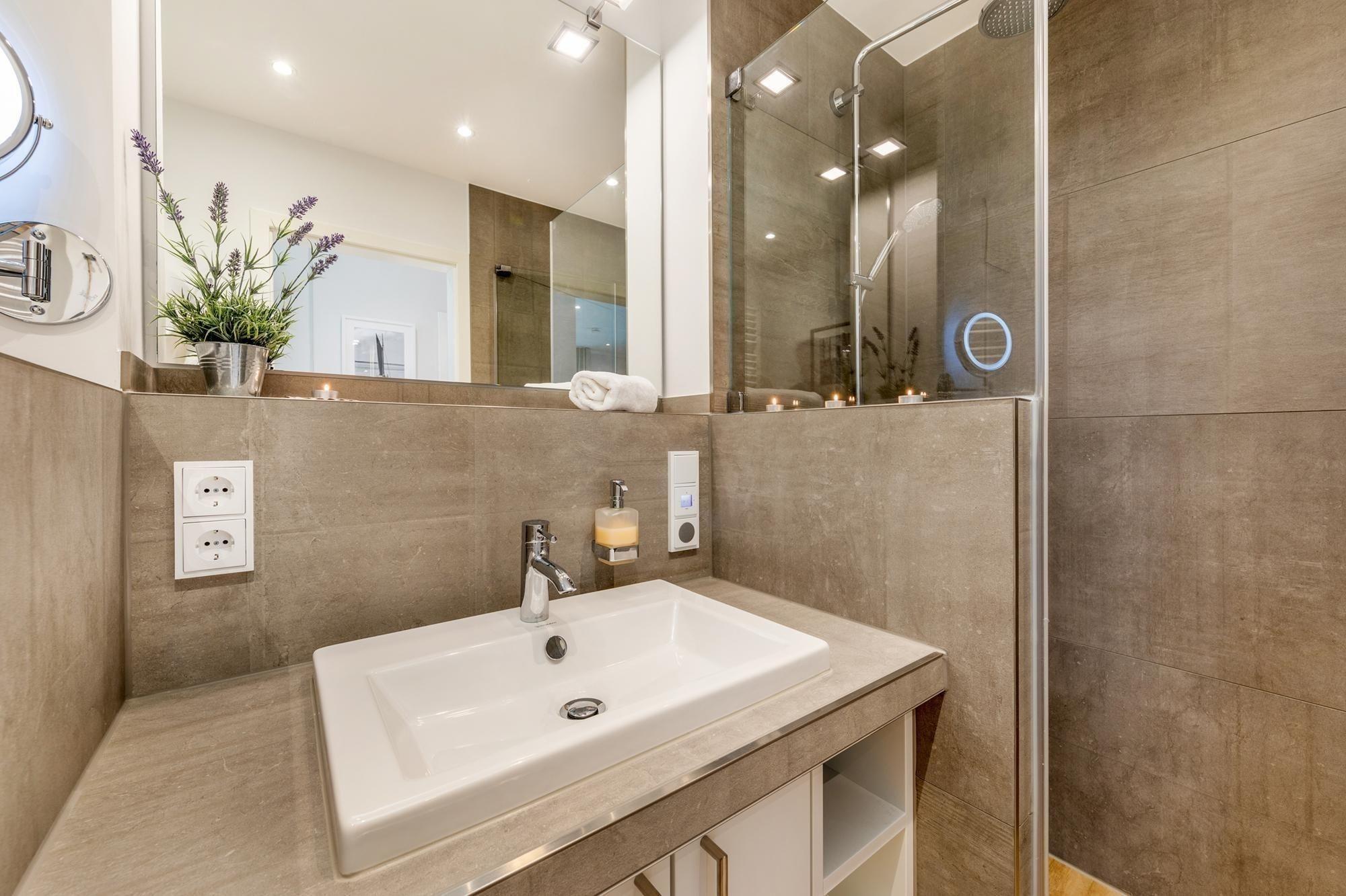 Die attraktive Ferienwohnung besticht durch ihre großzügige Raumaufteilung und moderne Ausstattung. Sie bietet zwei Schlafzimmer, ausgestattet mit jeweils einem komfortablen Doppelbett (180x200 m), und ein stilvolles Badezimmer mit bodengleicher Dusche sowie einem Gäste-WC. Der offene Wohnbereich kombiniert ein gemütliches Sofa mit einem Essbereich und einer vollausgestatteten Küche, die mit einem Geschirrspüler, einem Elektro-/Gasherd, Backofen, Mikrowelle und weiteren Geräten wie Kaffeemaschine und Espressomaschine überzeugt. Eine Fußbodenheizung sorgt für wohlige Wärme. Die Terrasse mit Garten lädt zum Entspannen ein. WLAN-Internet steht zur Verfügung, und die Wohnung ist allergikergeeignet. Zu den weiteren Annehmlichkeiten zählen eine HiFi-Anlage, TV, sowie zahlreiche Brettspiele. Ein Parkplatz für das Fahrzeug rundet das Angebot ab. Ein Kamin/Kachelofen bietet zusätzliche Gemütlichkeit an kühleren Abenden.
