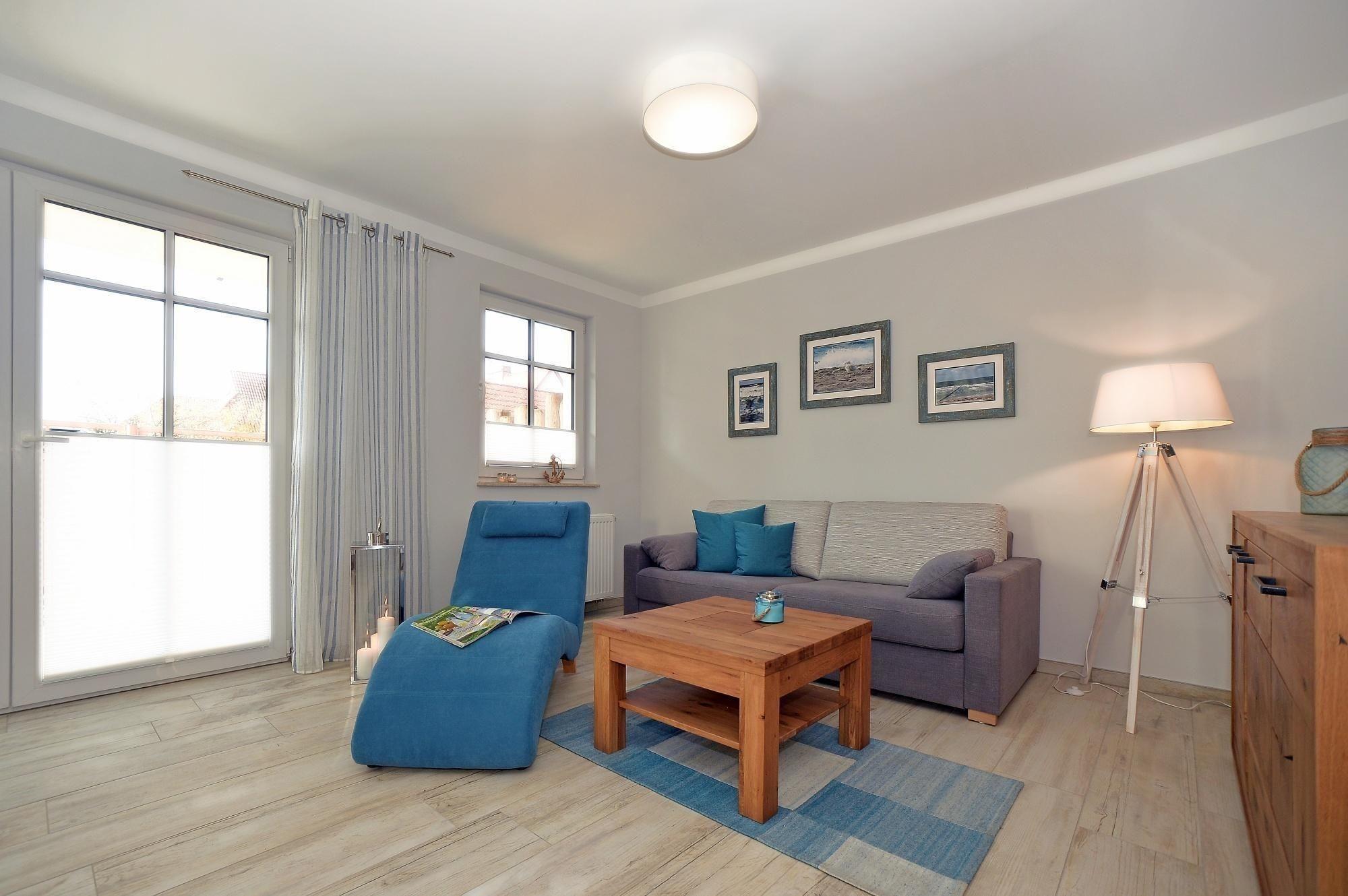 WLAN, Fußbodenheizung und eine HiFi-Anlage sorgen für zusätzlichen Komfort. Auf der großzügigen Südwest-Terrasse lädt ein Strandkorb zum Entspannen ein. Ein Parkplatz steht ebenfalls zur Verfügung. Diese Ferienwohnung ist allergikergeeignet und ideal für einen erholsamen Aufenthalt.