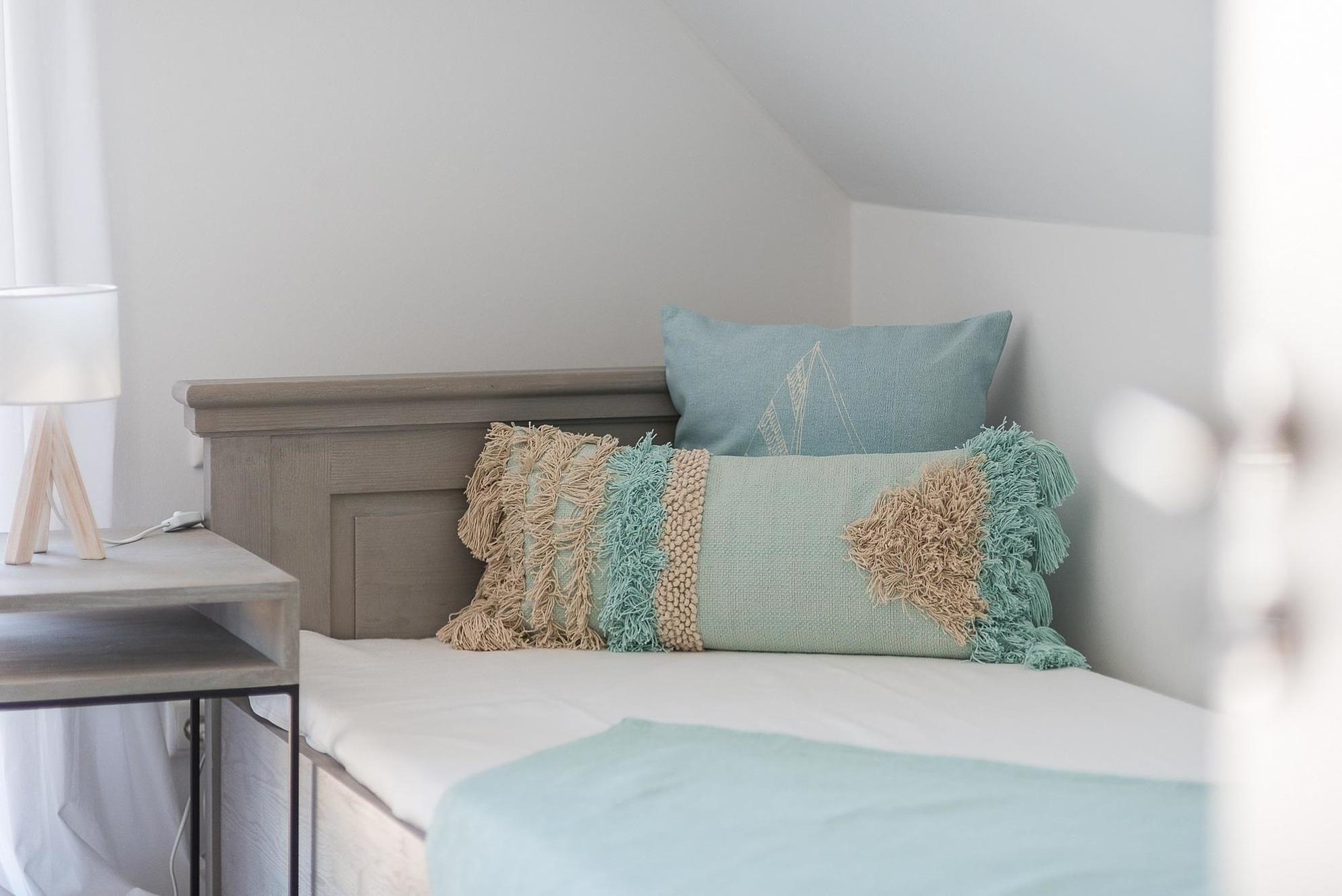 Das Schlafzimmer bietet ein komfortables Doppelbett (180x200), während im zweiten Schlafzimmer zwei Einzelbetten (2x 90x200) zur Verfügung stehen. Für Unterhaltung sorgen ein TV, eine HiFi-Anlage sowie ein DVD-/Blu-Ray-Player. Die Wohnung ist allergikergeeignet und mit WLAN ausgestattet. Zudem stehen Brettspiele bereit, um entspannte Stunden zu verbringen. Eine Waschmaschine, Bügeleisen und Staubsauger vervollständigen die Ausstattung und erleichtern den Aufenthalt.
