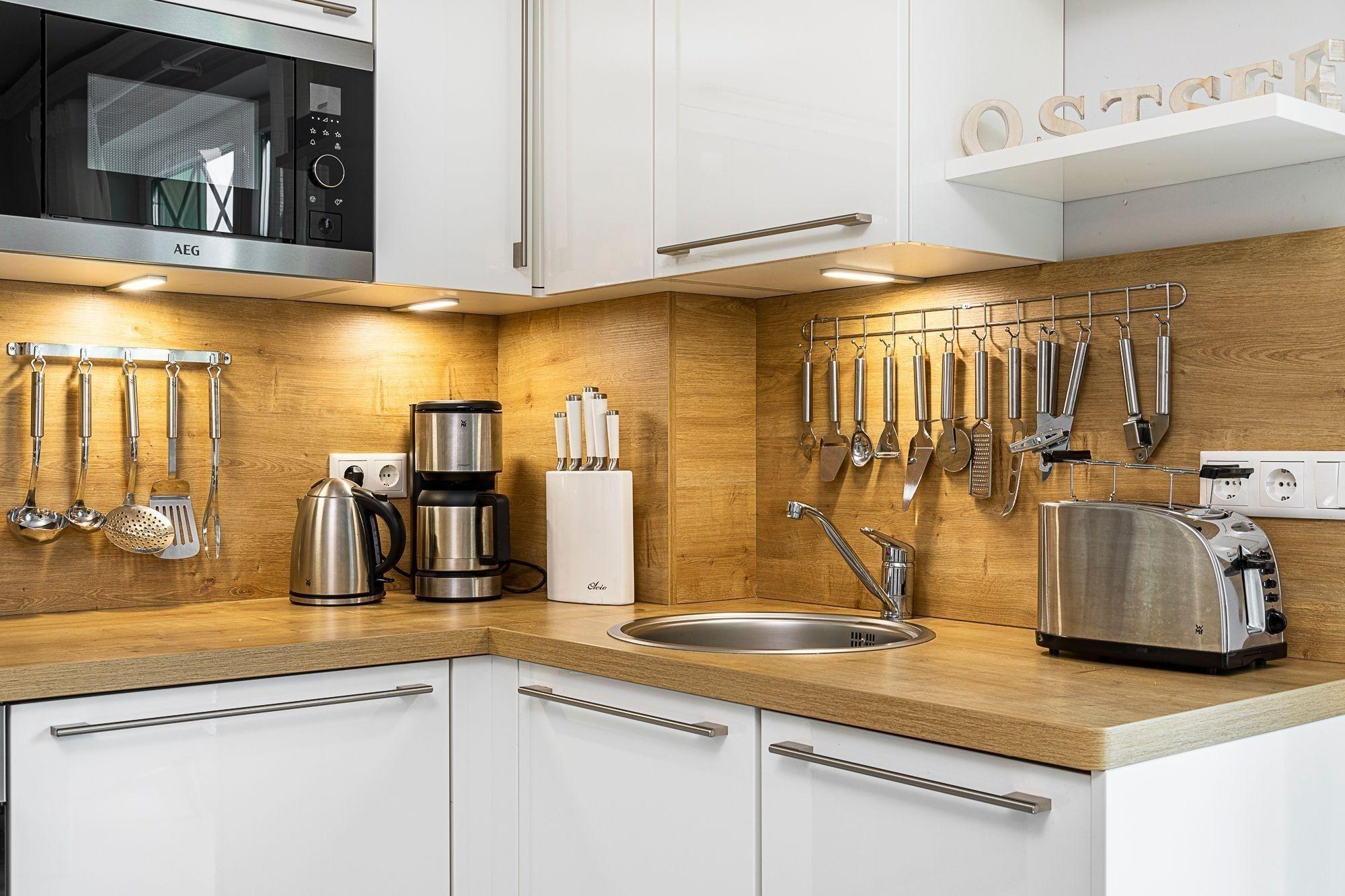 Die Ferienwohnung bietet ein modernes und barrierefreies Ambiente, geeignet für Allergiker. Sie verfügt über zwei Schlafzimmer, eines mit einem komfortablen Doppelbett und das andere mit zwei Einzelbetten. Die offene Küche ist komplett ausgestattet mit einem Elektro-/Gasherd, Backofen, Geschirrspüler, Kühlschrank sowie einer Kaffeemaschine und weiteren Küchenutensilien wie einem Mixer und Toaster. Das Duschbad überzeugt mit einer bodengleichen Dusche, Haartrockner und Kosmetikspiegel. Der Wohnbereich besticht durch ein gemütliches Sofa, Sessel und einen Kamin/Kachelofen für entspannte Stunden. Für Unterhaltung sorgen eine HiFi-Anlage und ein TV. Zudem stehen WLAN, eine Waschmaschine, ein Wäschetrockner und weitere praktische Annehmlichkeiten wie ein Fahrstuhl, Erste-Hilfe-Set und Rauchmelder zur Verfügung. Das stilvolle Ambiente wird durch Fußbodenheizung und hochwertige Ausstattung abgerundet. Spiele und Babyfon ergänzen das Angebot für Familien.