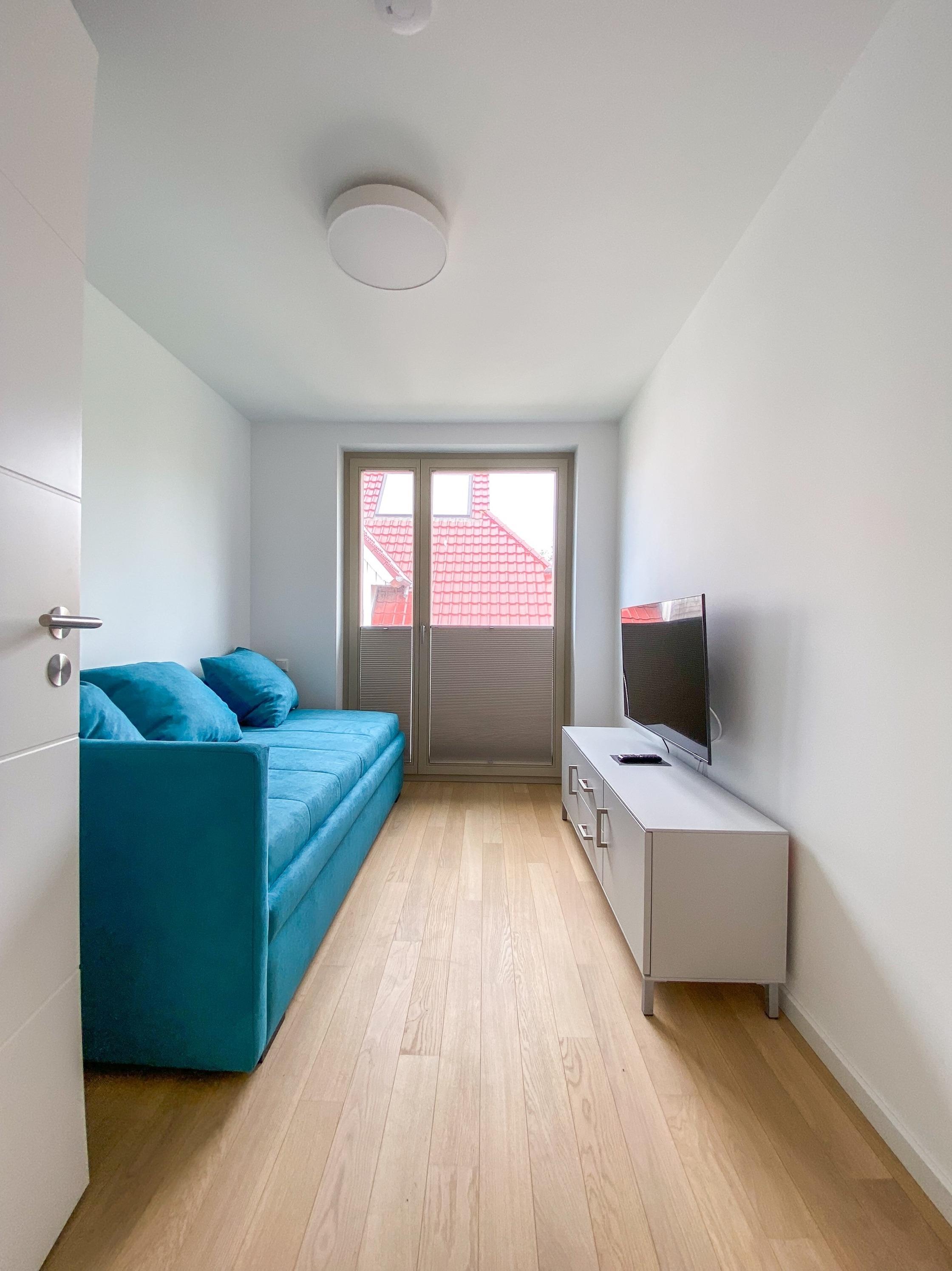 Im 1. Obergeschoss befinden sich 2 Schlafzimmer mit Doppelbetten (160x200) und ein weiteres Zimmer mit einer Schlafcouch. Jedes Schlafzimmer hat einen eigenen TV.