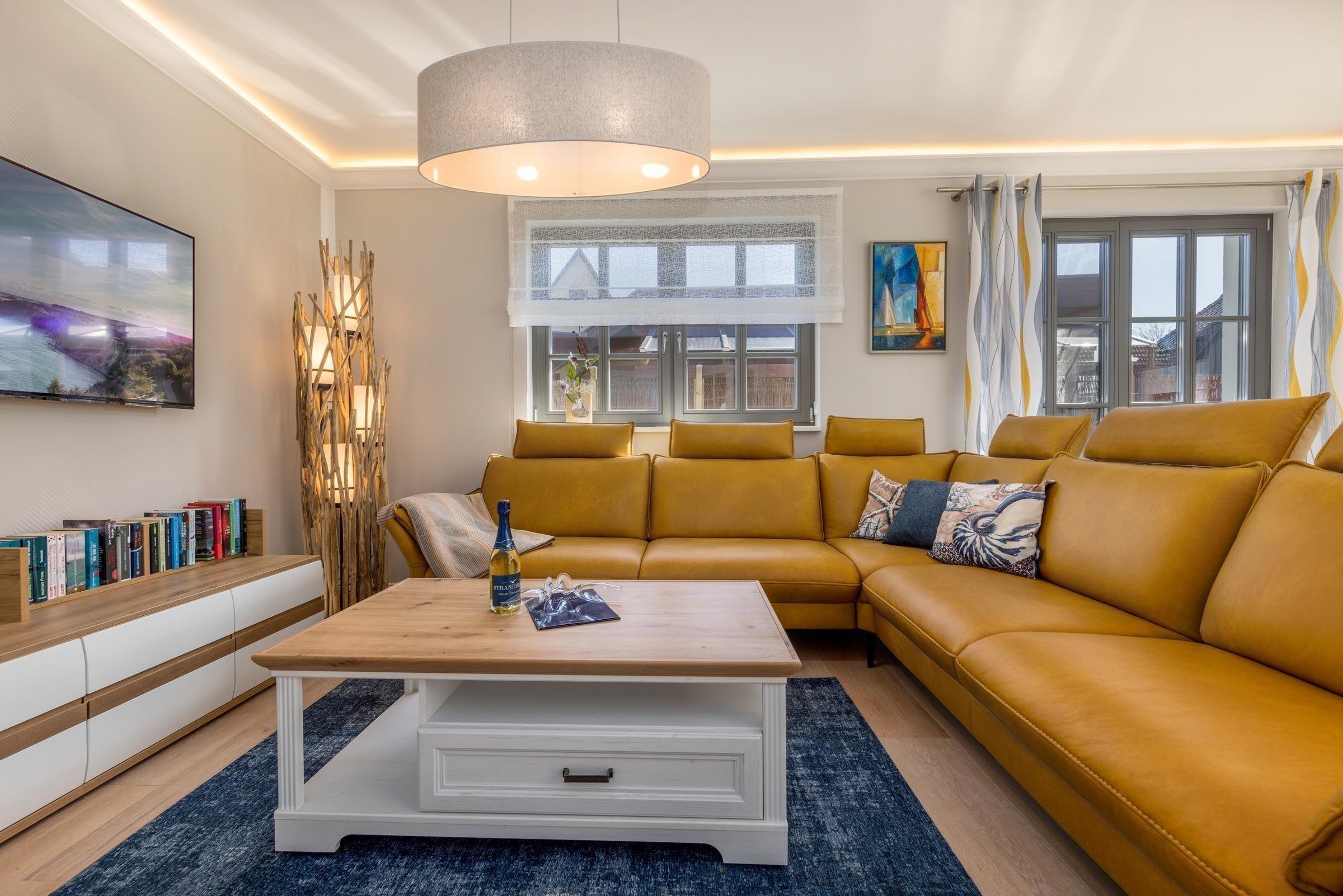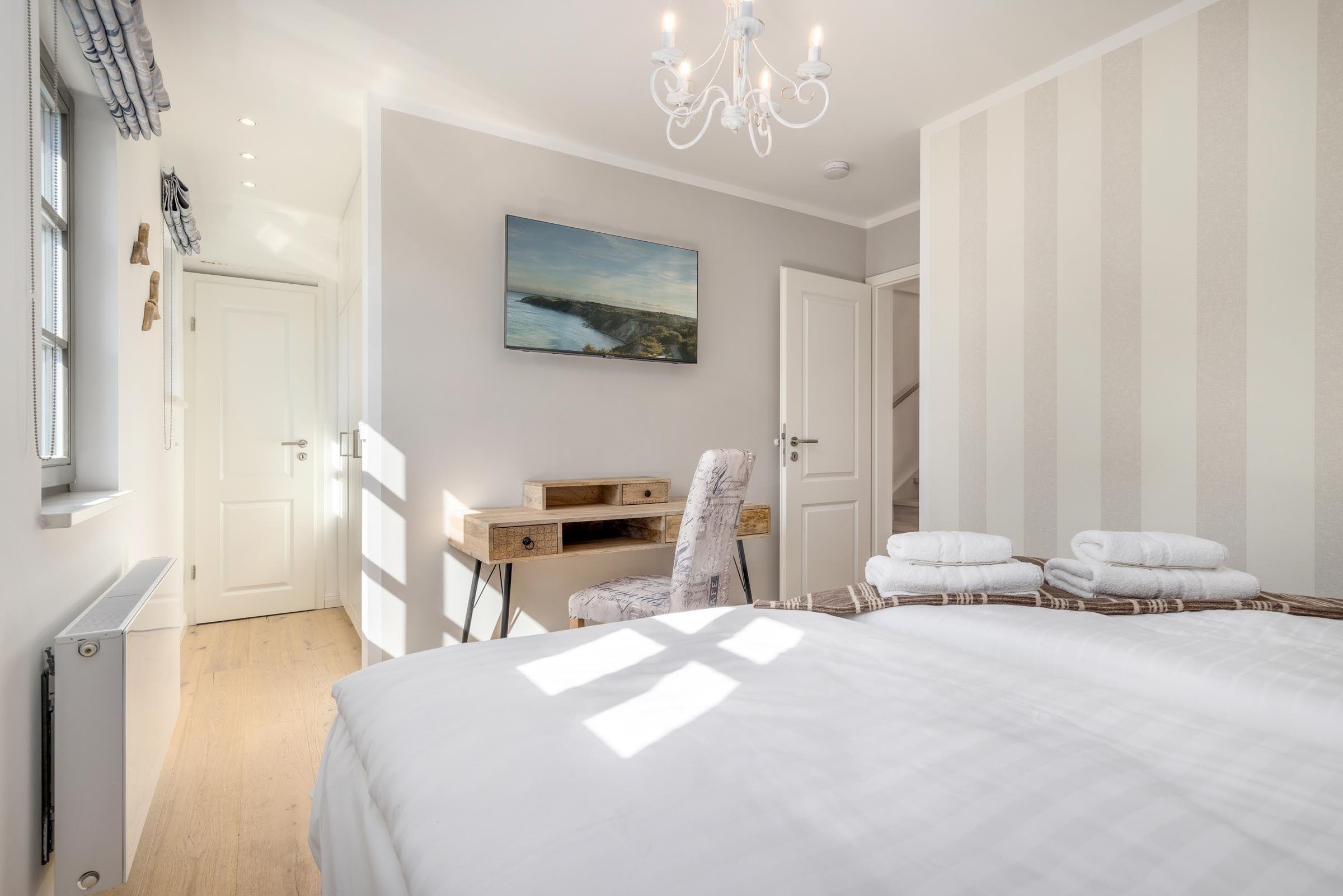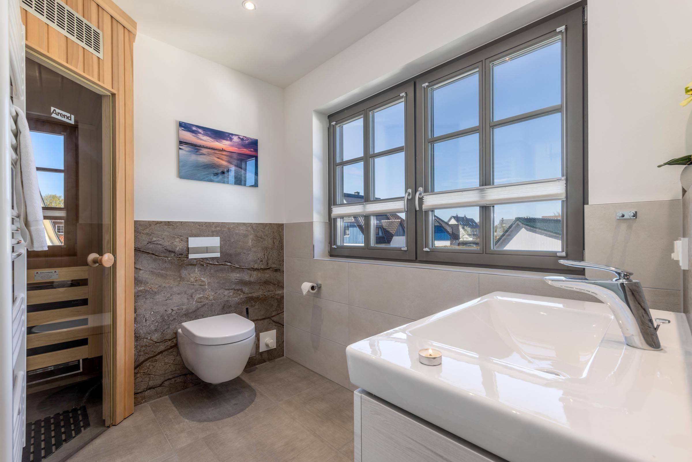 Die beiden stilvollen Badezimmer, eines mit bodengleicher Dusche und Fenster, bieten einen hohen Komfort. Ein Kamin sorgt für wohlige Wärme, während die HiFi-Anlage und der TV für Unterhaltung sorgen. WLAN mit 100 MBit/s steht zur Verfügung.