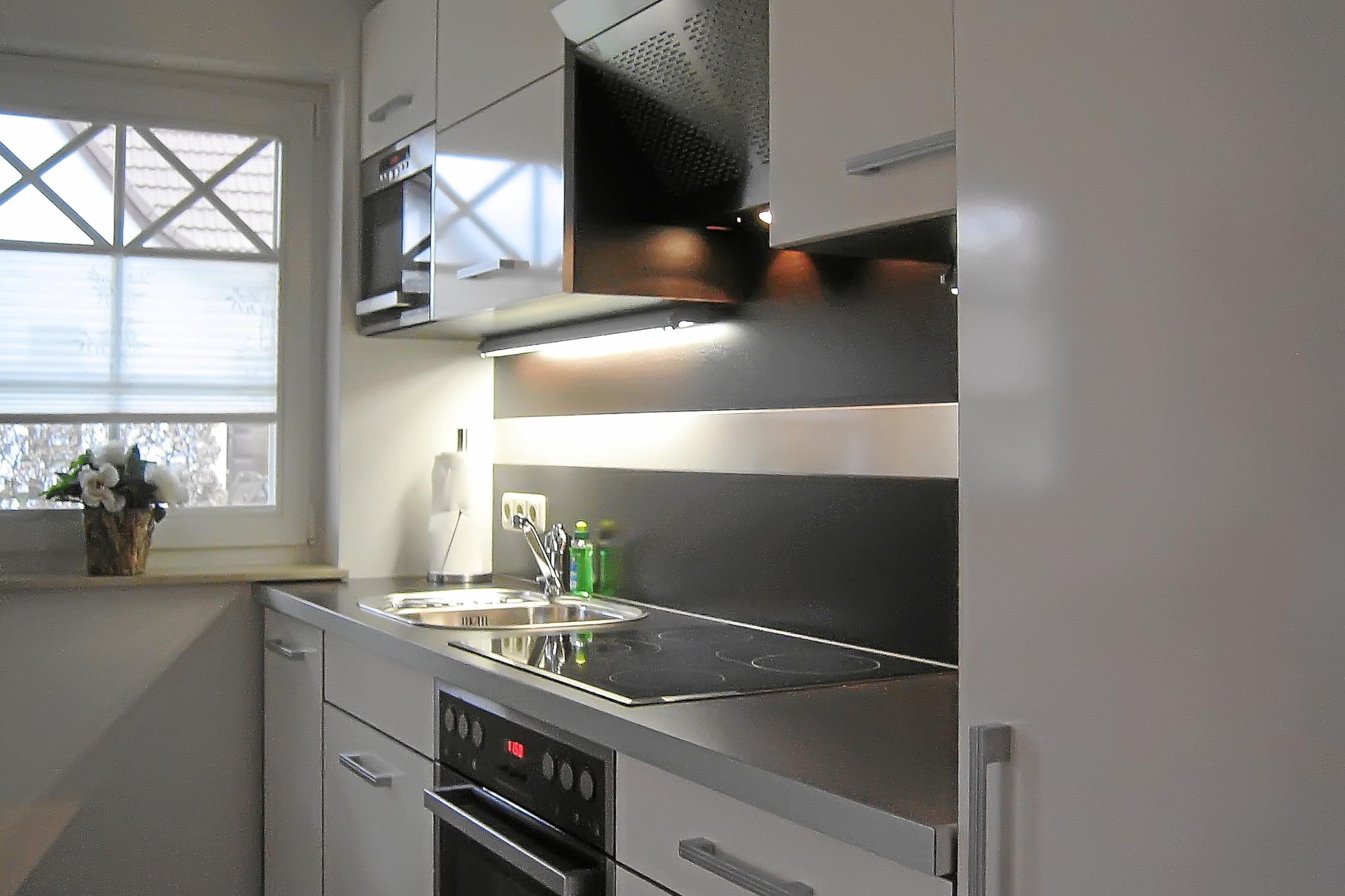 Der großzügige Wohnraum integriert eine vollständig ausgestattete Küche mit 98er Arbeitshöhe in offener Bauweise mit angrenzendem Esstisch. Bei entsprechender Wetterlage wird der Wohnraum vom Frühstück bis zum Abend von Sonnenschein durchflutet. Im Wohnraum/Schlafraum befindet sich neben WLan auch ein DSL LAN Internetzugang (LAN Kabel RJ 45 bitte mitbringen), ein Telefonanschluss für ankommende Gespräche, eine HiFi Anlage mit FM und DAB+ Radio, CD und DVD Player, sowie ein 42 Zoll LED Smart SAT HD -TV. Ein weiterer 32 Zoll HD LCD Fernseher und ein DSL LAN / WLan Zugang befindet sich im Schlafraum.