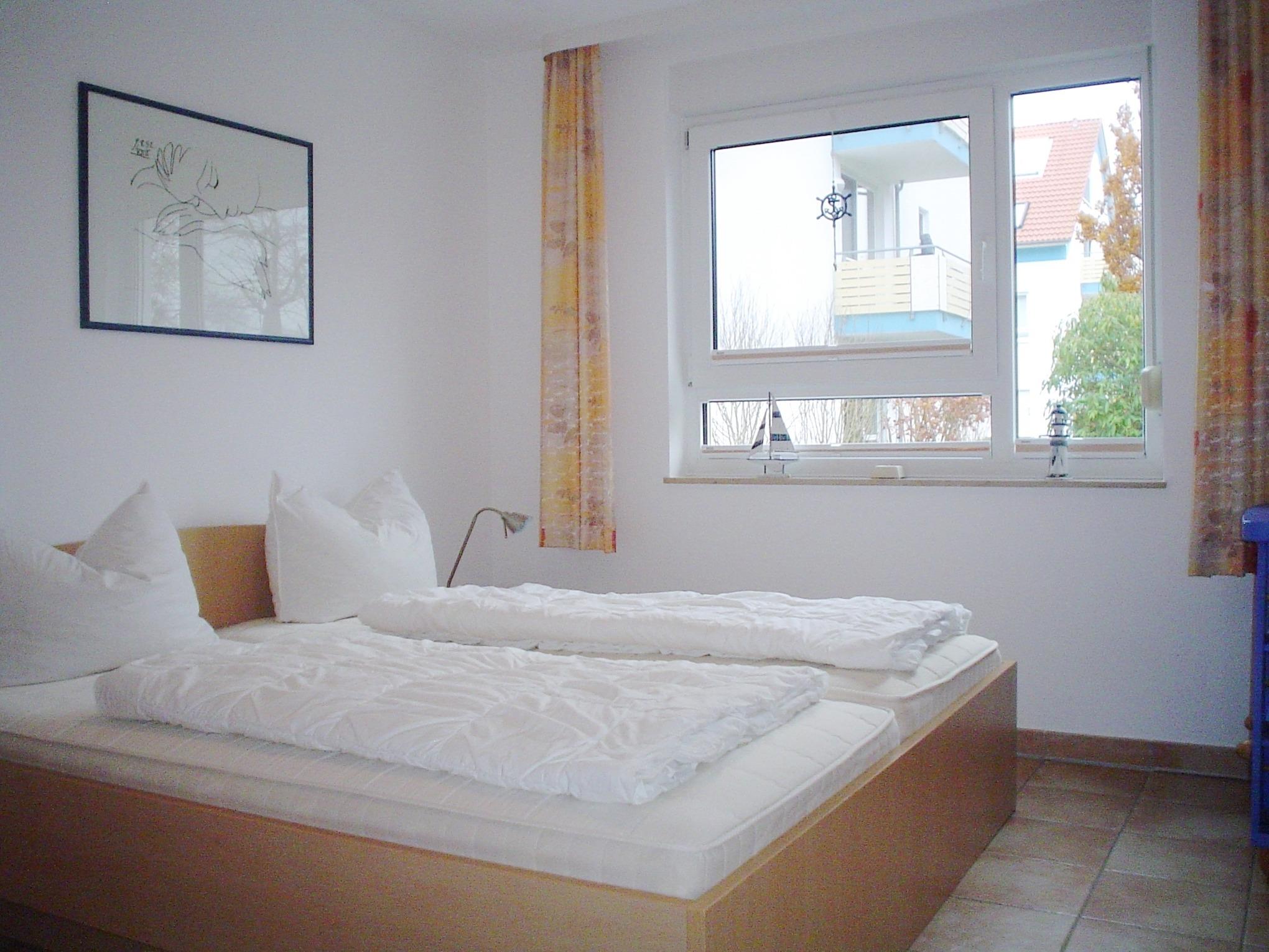 Schlafzimmer mit komfortablem Doppelbett – für erholsame Nächte und süße Träume nach einem Tag am Meer.