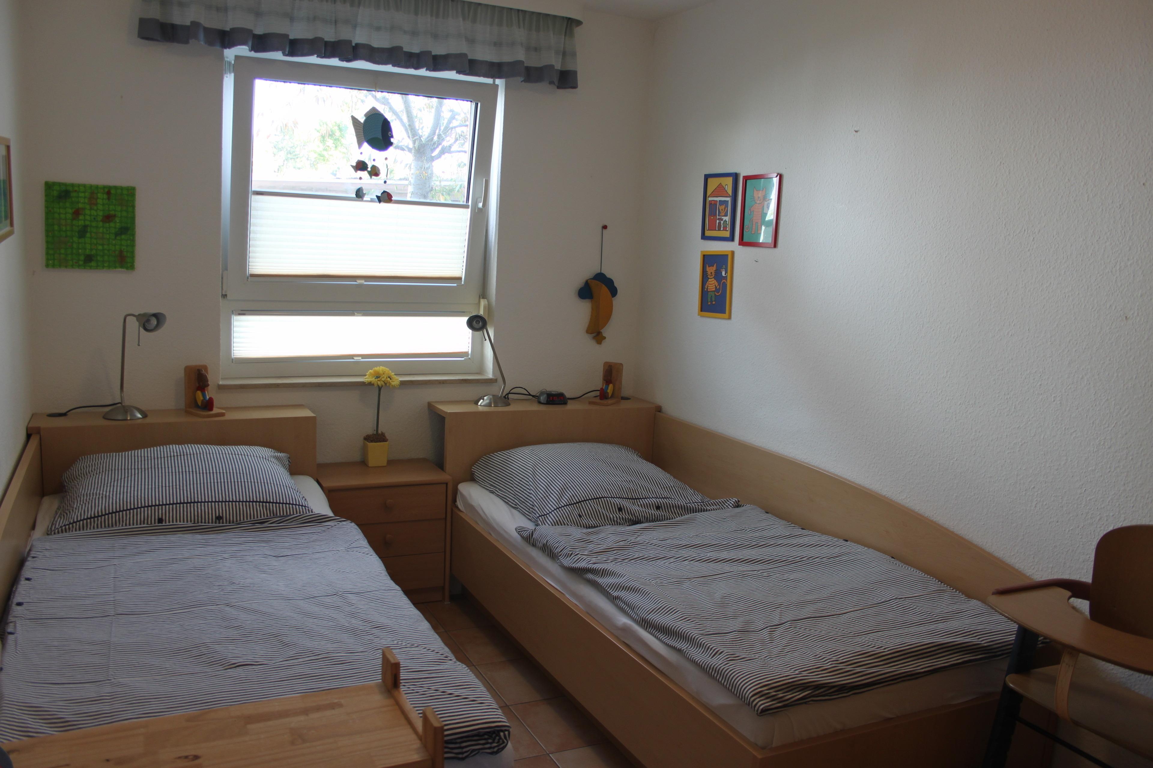 Zweites Schlafzimmer mit zwei Einzelbetten – perfekt für Kinder oder Freunde.