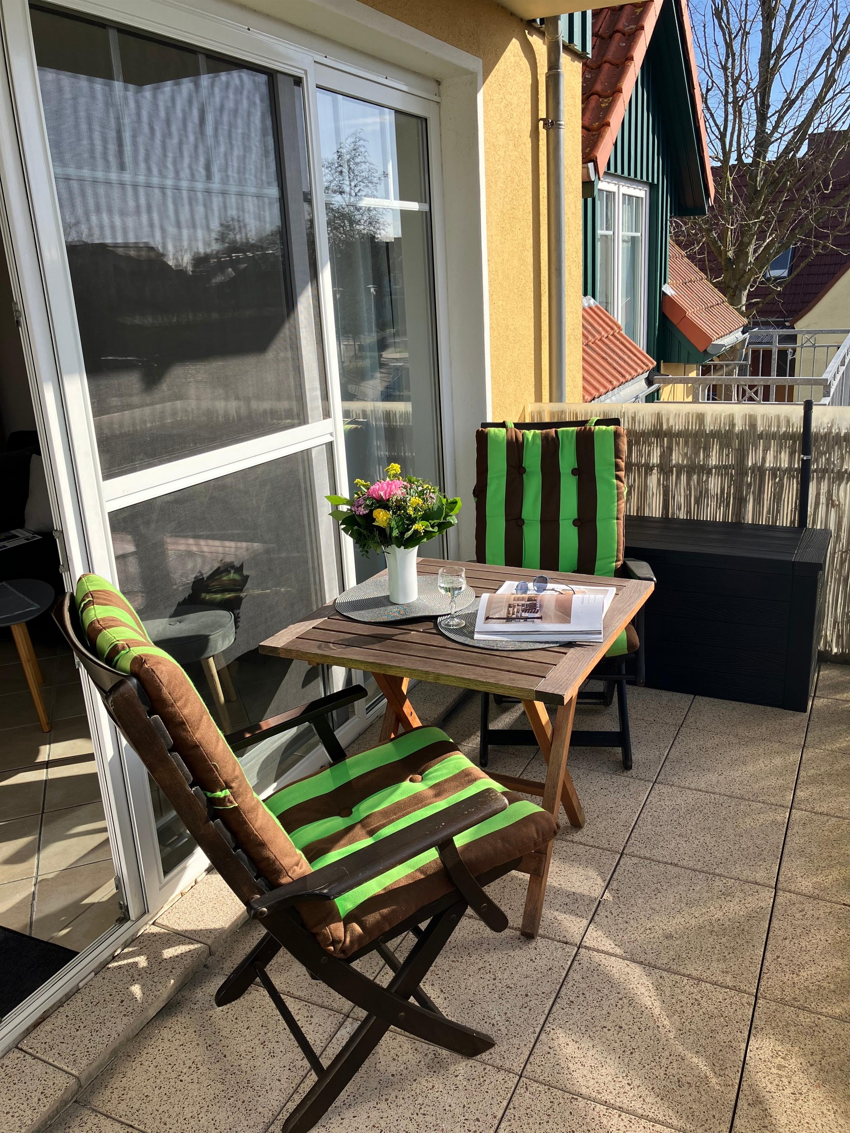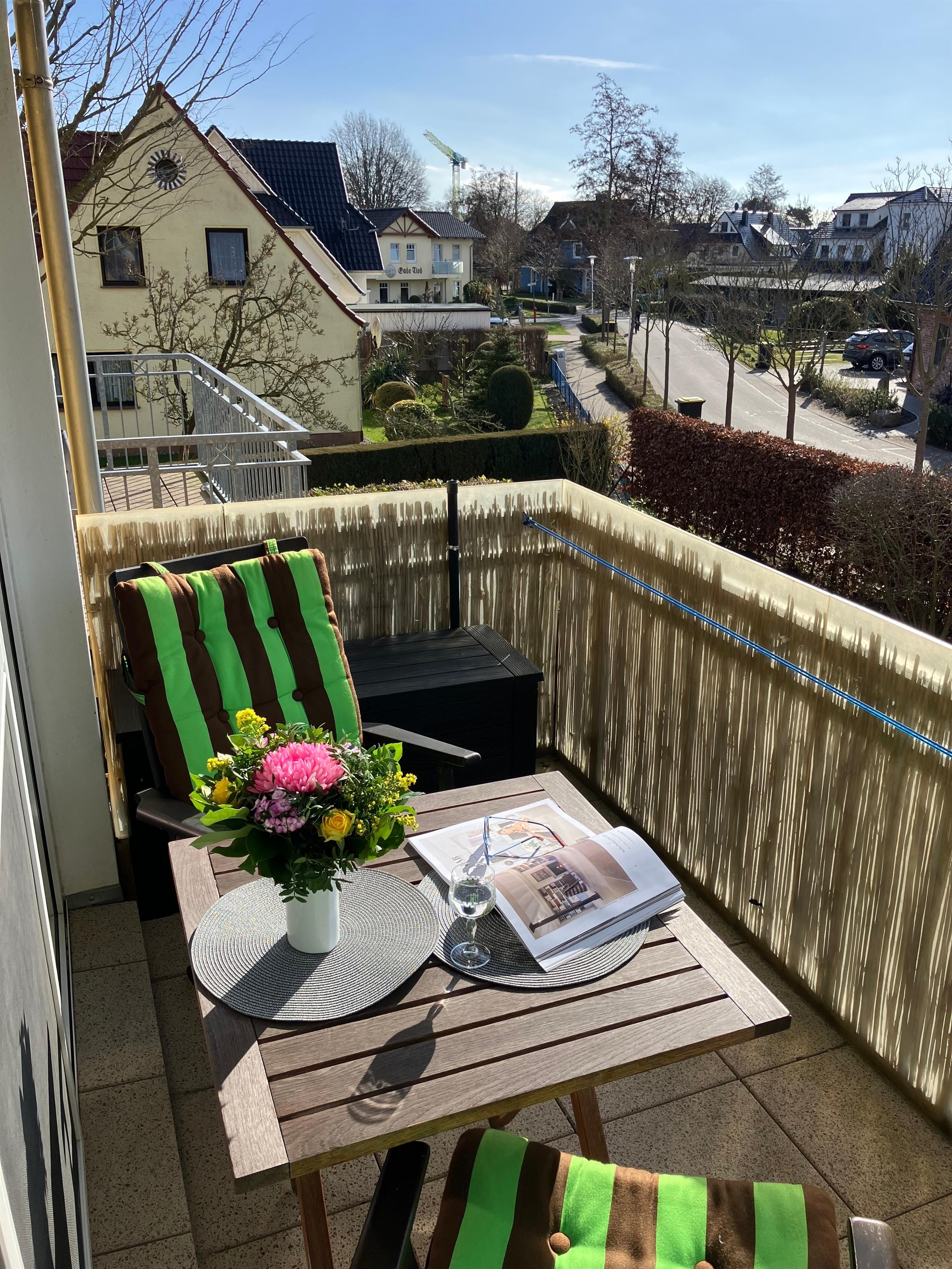 Das neue Bad mit hochwertiger Einrichtung lässt einen den Morgen unter der Regendusche gut starten. Das Badezimmer hat ein Veluxfenster und ist somit nicht nur hell und freundlich, sondern läßt sich gut lüften. Eine moderne Küche inkl. Geschirrspüler, Ceranfeld, Backofen mit integrierter Mikrowelle bereitet beim Kochen für Zwei; großes Vergnügen. Der Wohnraum verfügt über ein sehr hochwertiges Schlafsofa (1,60 x 2,00) - "Bruno-Das Bett" - und bietet daher einen sehr guter Schlafkomfort. Das Bett ist mit einem Ausziehmechanismus leicht zu bedienen. Eine passende Polsterbox hinter dem Sofa lässt die Bettwäsche wunderbar unsichtbar verschwinden. Die Wohnung verfügt über Wlan und liegt in ruhiger, beliebter Lage, in fußläufiger Strandnähe in Zingst. Ein besonderes Highlight ist der große Südbalkon mit einem Tisch und zwei Sitzmöbeln. Hier lässt sich nach einem Strandtag gemütlich das Glas Wein am Abend genießen. In dem separaten Abstellzimmer im Wohnbereich ist die Garderobe integriert und bietet Stauraum für alles, was nicht in den Wohnbereich gehört. Neben einem eigenen Parkplatz ist auch der großzügige separat abschließbare Abstellraum für Fahrräder und Sport- , bzw. Strandequipment hervorzuheben. Bitte auch hier die Koffer abstellen. Kleine Hunde sind herzlich willkommen, bitte entsprechende Absprache vorab.