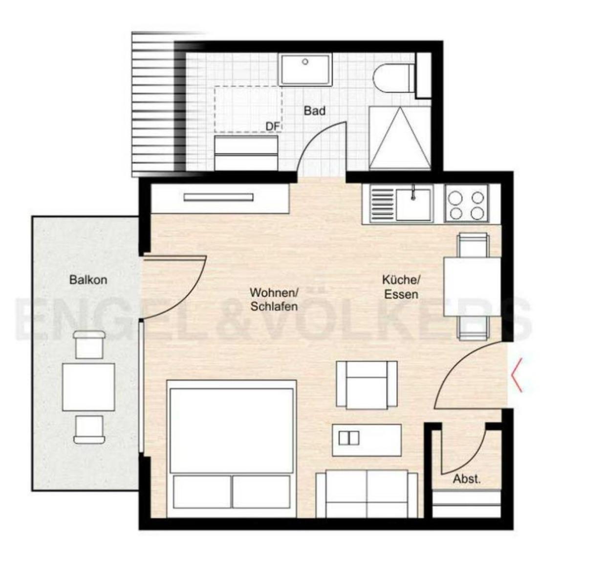 Das sonnendurchflutete Ein-Raum-Appartement wurde im Dezember 2023 vollständig saniert.