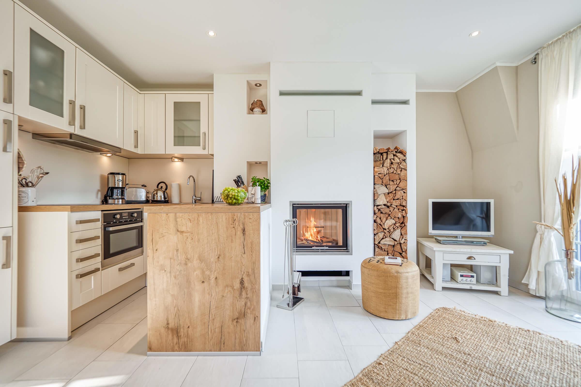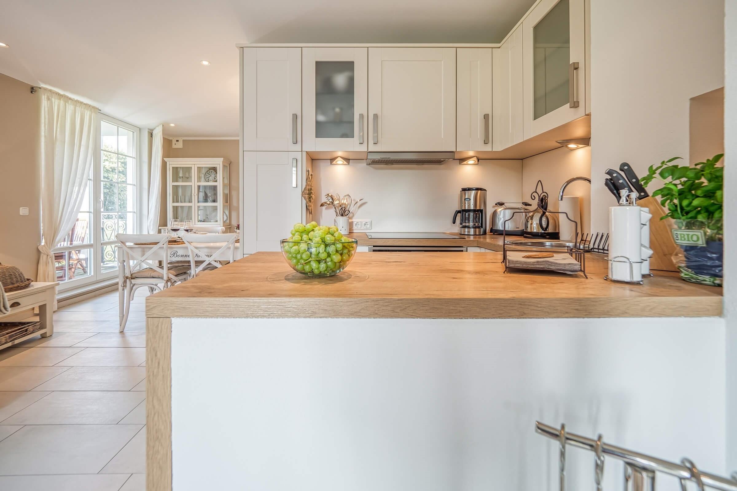 Die Ferienwohnung " Wieck " ist auf 54 qm mit viel Liebe zum Detail hochwertig und komfortabel ausgestattet. Sie bietet in der offenen Küche hochwertige Geräte und lädt zum gemeinsamen kochen und genießen ein. Auch an die häuslichen Dinge wurde gedacht , wie. Waschmaschine , Bügelbrett , Wäscheständer u. v. m. zur kostenlosen Nutzung . Die Balkons ( Ausrichtung Norden und Südwest ) sind mit Möbeln zum liegen und sitzen ausgestattet und lädt ein den Sonnenuntergang bei einem Glas Wein zu beobachten.