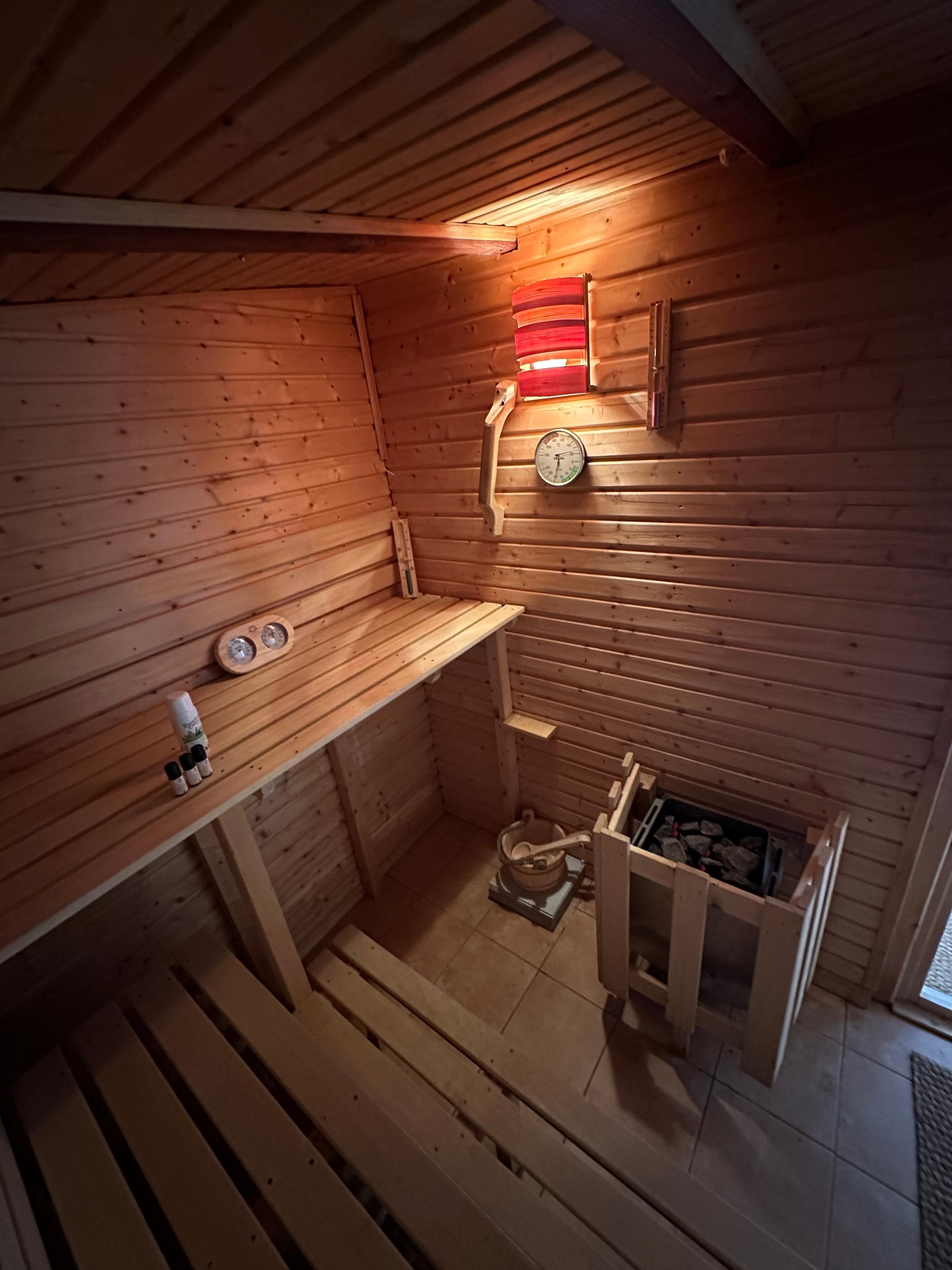 Die gesamte Wohnung ist barrierefrei zugänglich, einschließlich des Zugangs zur Wohnung selbst. Sie können auch die Sauna und den kleinen Fitnessraum, der mit einem verstellbaren Hantelset, einer Kraftmaschine und diversen Fitness-Zubehör bestückt ist, nutzen, um sich zu entspannen und fit zu halten. Ein Parkplatz ist für Ihre Bequemlichkeit vorhanden und eine Ladestation (max. 11 KW) zu Selbstkosten von 0,39 €/Kwh für Elektroautos steht hinter dem Haus unter dem Carport zur Verfügung, die von allen Gästen genutzt werden kann.